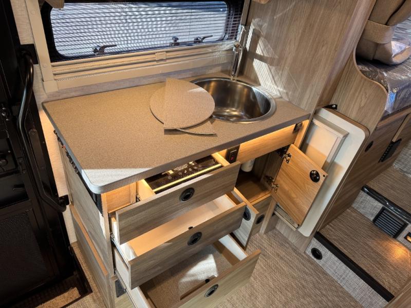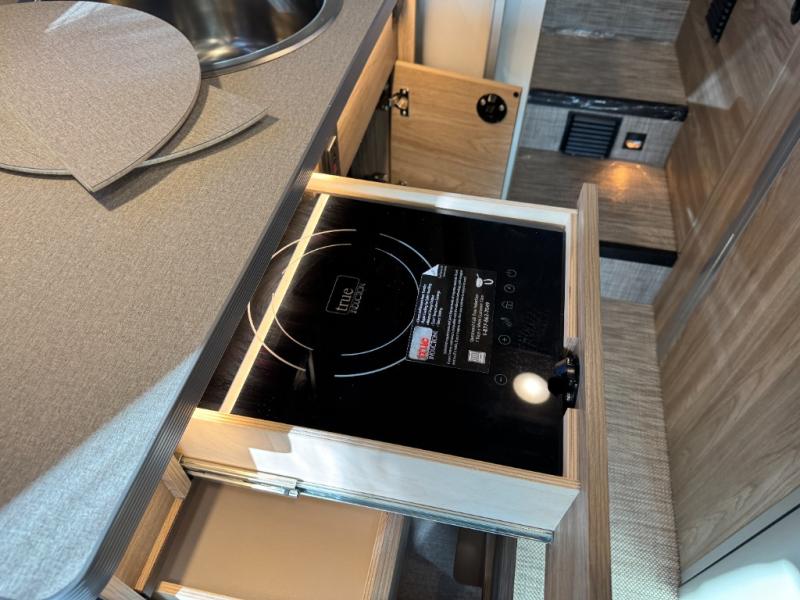 You will love the versatility found throughout this motorhome! Starting with the multifunctional lounge that can convert into four different modes. The flexible wet-dry bath has a pivoting lavatory wall, a 24" x 30" shower, an Oxygenics shower head to wash up, and even robe hooks to hang your towel afterwards. Keep your bellies full with delicious home cooked meals prepared in the versatile galley with the portable single burner induction range top, convection microwave oven, and 5.3 cu. ft. single door 12V refrigerator, plus a galley drawer/counter extension base. The heated gear garage has a L-track cargo tie down system with removable floor liner, 110V/12V charging ports and LED lighting to see clearly day or night!