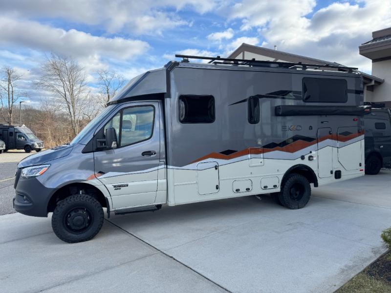 If you're ready to start your RV adventure then you need to check out this Winnebago EKKO Sprinter Class C diesel motorhome! Experience a versatile base camp with belted seating for four, sleeping for three or more with the added optional pop-top, deep gear garage, and flexible living space. It has enhanced off-road capabilities by being built on the Mercedes-Benz AWD Sprinter chassis that has elevated ground clearance and all-terrain tires for low-traction environments. Your driving comfort and safety are also enhanced with a MBUX multimedia system with navigation, Apple CarPlay and Android Auto, a digital rearview mirror, active lane keeping assist, DISTRONIC PLUS adaptive cruise control, attention assist, and much more. Come see what else it has to offer!