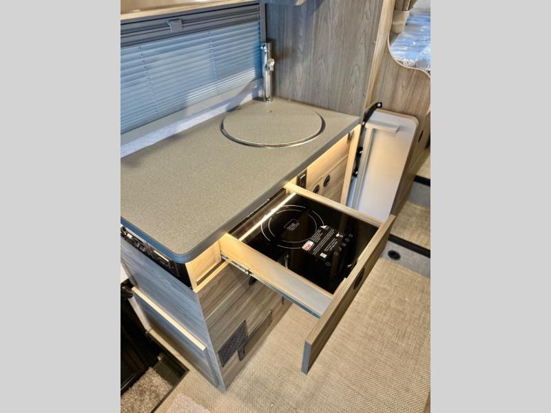 You will love the versatility found throughout this motorhome! Starting with the multifunctional lounge that can convert into four different modes. The flexible wet-dry bath has a pivoting lavatory wall, a 24" x 30" shower, an Oxygenics shower head to wash up, and even robe hooks to hang your towel afterwards. Keep your bellies full with delicious home cooked meals prepared in the versatile galley with the portable single burner induction range top, convection microwave oven, and 5.3 cu. ft. single door 12V refrigerator, plus a galley drawer/counter extension base. The heated gear garage has a L-track cargo tie down system with removable floor liner, 110V/12V charging ports and LED lighting to see clearly day or night!