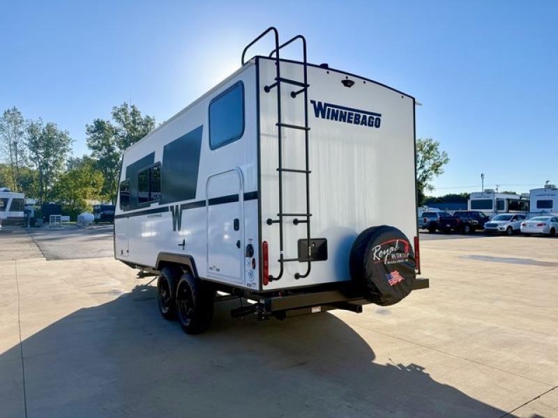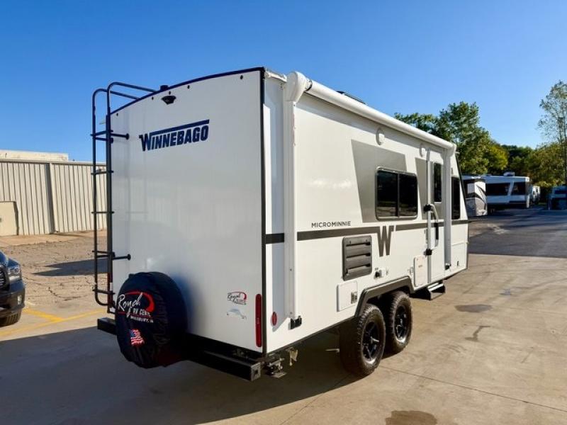 Start out on your boundless journey in one of these Winnebago Micro Minnie travel trailers! Towing is made simple with the 7' width to keep your Micro Minnie in your rear-view mirror. They don't lack in features either although they are compact in size. The spacious galley including a sink, refrigerator, a cooktop, and even a convection microwave oven allows you to cook without compromise. You will not only enjoy the entertainment found indoors with a Smart TV, a JBL premium sound system and Aura Cube high performance mechless media center, but outdoors you will also enjoy the JBL premium speakers and a power awning with LED lighting. Each model also comes with flexible exterior storage to make packing quick and easy, a 200-watt solar panel for off-grid camping, and Dexter TORFLEX torsion stub axles for smooth towing!