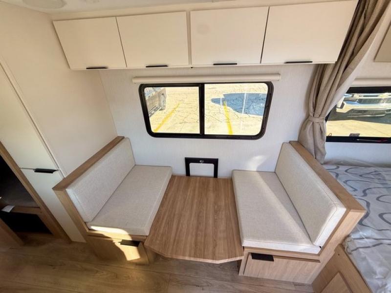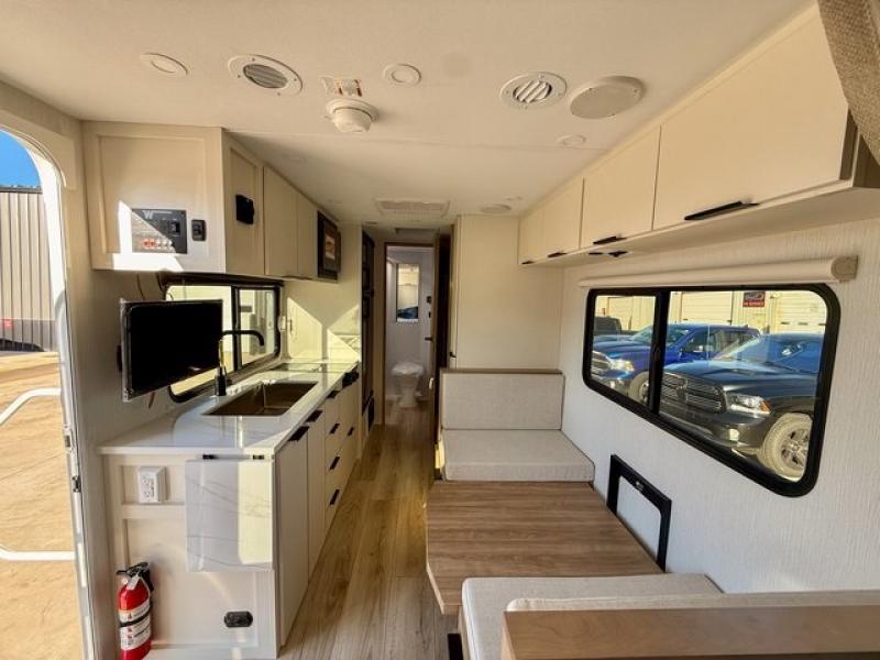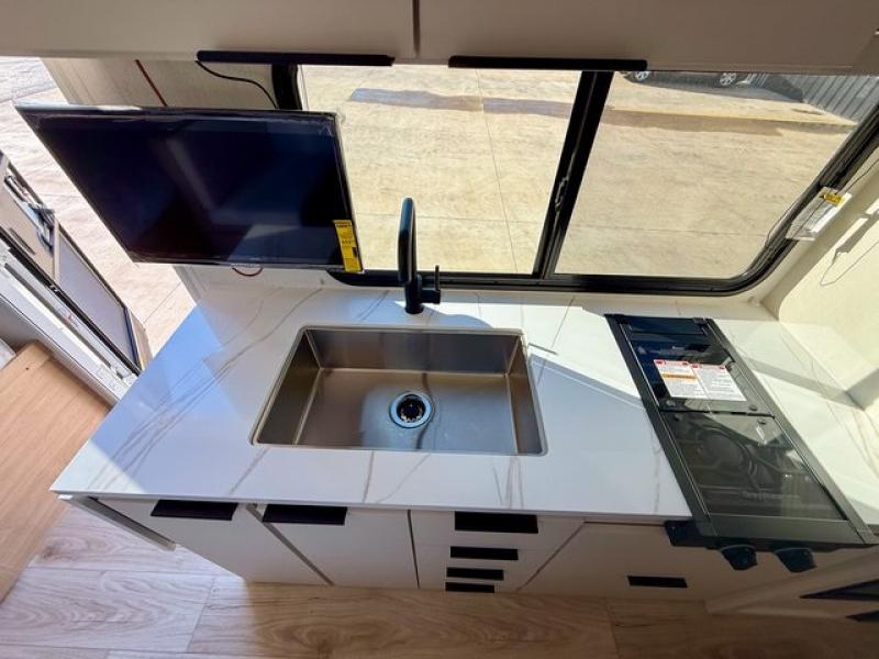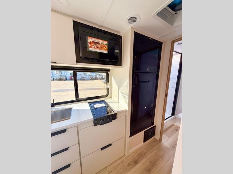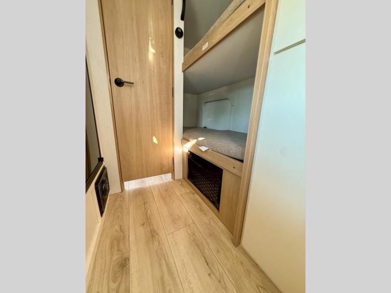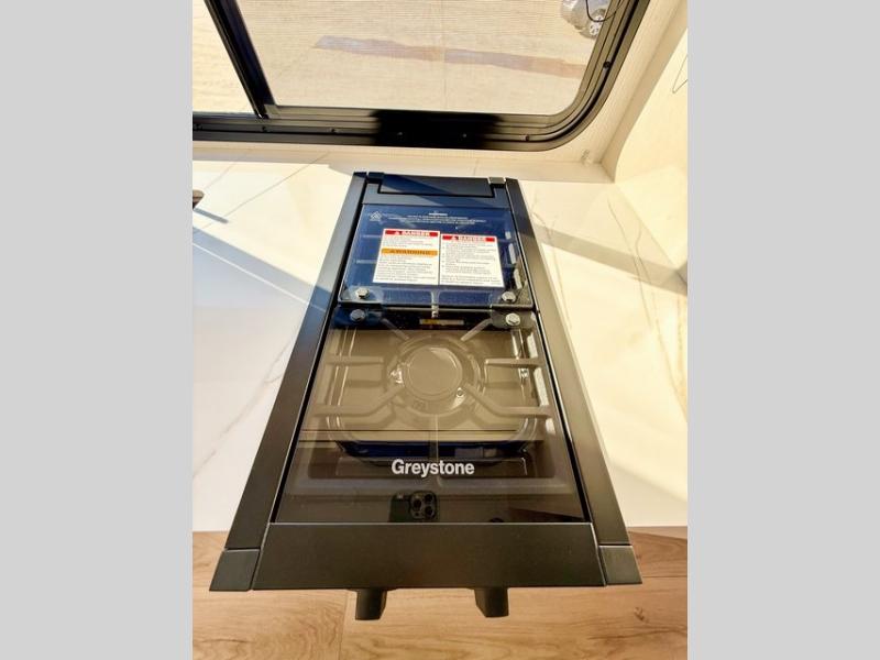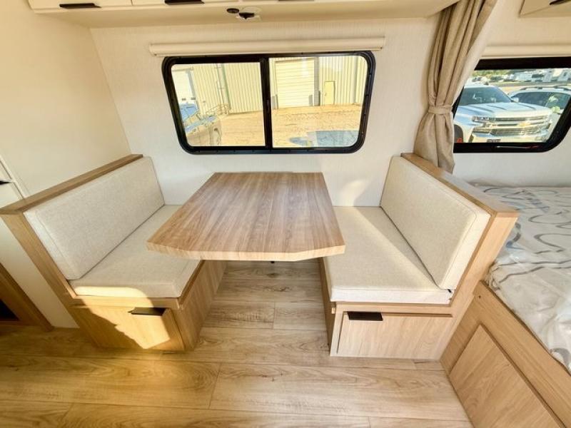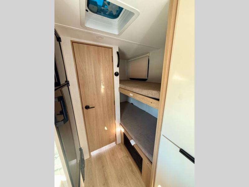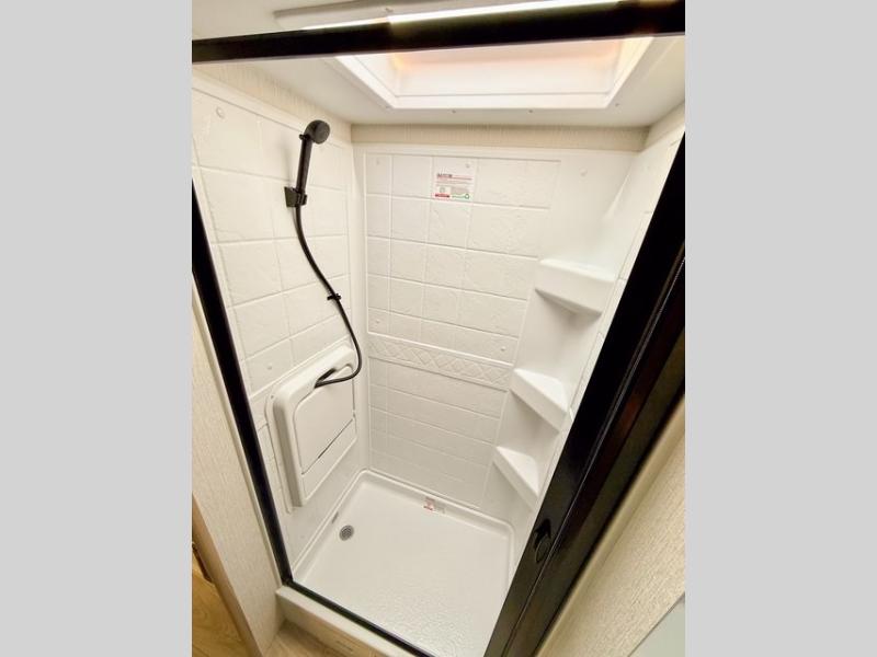 Pack your bags and load up the kids to head out on a great camping adventure as a family! There is a front 54" x 74" full-size bed for you and a set of rear corner bunk beds for the kids, plus they can bring a friend to sleep on the 32" x 74" booth dinette. You can prepare meals for the whole group with the three burner cooktop and the 10.3 cu. ft. 12V refrigerator, plus you can pop a bag of popcorn in the microwave for movie night with the Smart TV. And a private toilet and 24" x 36" shower next to the bunks and offers a great place to get ready for the day or bedtime.