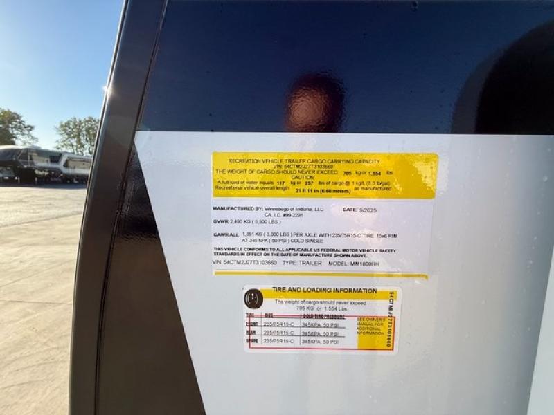 New 2026 Winnebago Micro Minnie 1800BH Travel Trailer