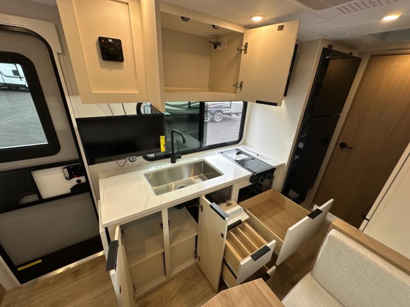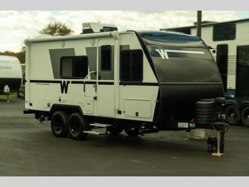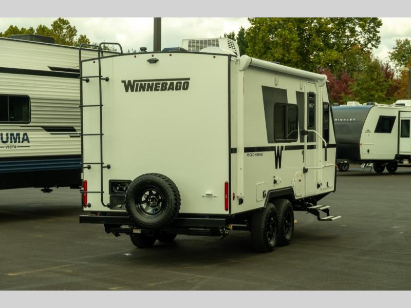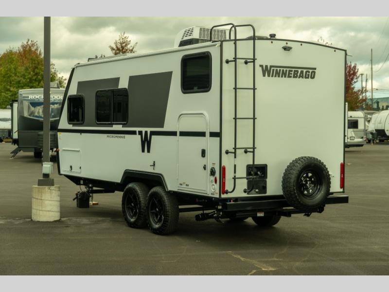 Start out on your boundless journey in one of these Winnebago Micro Minnie travel trailers! Towing is made simple with the 7' width to keep your Micro Minnie in your rear-view mirror. They don't lack in features either although they are compact in size. The spacious galley including a sink, refrigerator, a cooktop, and even a convection microwave oven allows you to cook without compromise. You will not only enjoy the entertainment found indoors with a Smart TV, a JBL premium sound system and Aura Cube high performance mechless media center, but outdoors you will also enjoy the JBL premium speakers and a power awning with LED lighting. Each model also comes with flexible exterior storage to make packing quick and easy, a 200-watt solar panel for off-grid camping, and Dexter TORFLEX torsion stub axles for smooth towing!