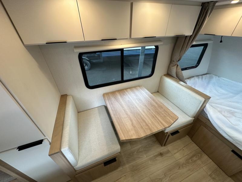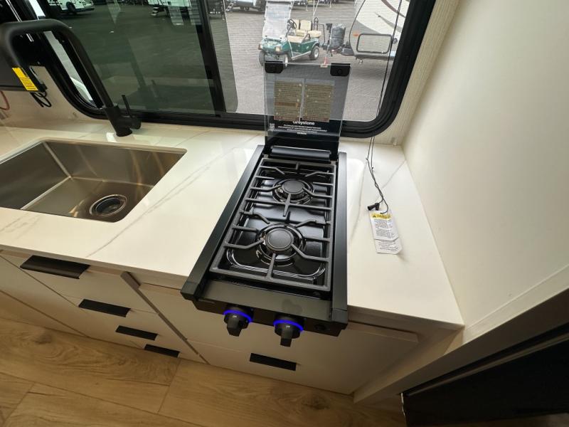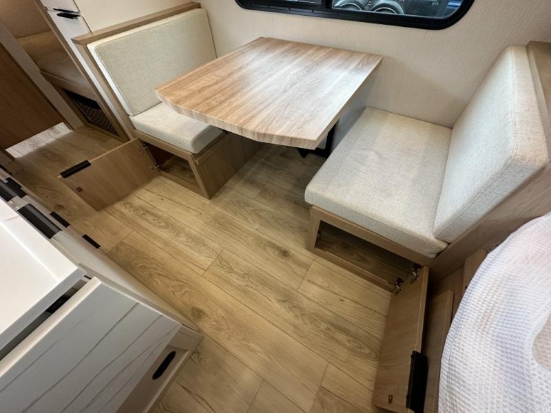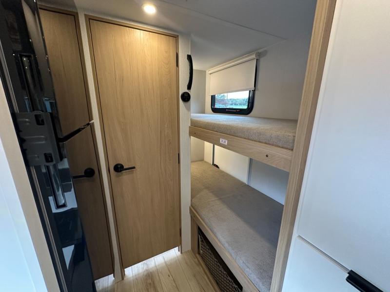 Pack your bags and load up the kids to head out on a great camping adventure as a family! There is a front 54" x 74" full-size bed for you and a set of rear corner bunk beds for the kids, plus they can bring a friend to sleep on the 32" x 74" booth dinette. You can prepare meals for the whole group with the three burner cooktop and the 10.3 cu. ft. 12V refrigerator, plus you can pop a bag of popcorn in the microwave for movie night with the Smart TV. And a private toilet and 24" x 36" shower next to the bunks and offers a great place to get ready for the day or bedtime.