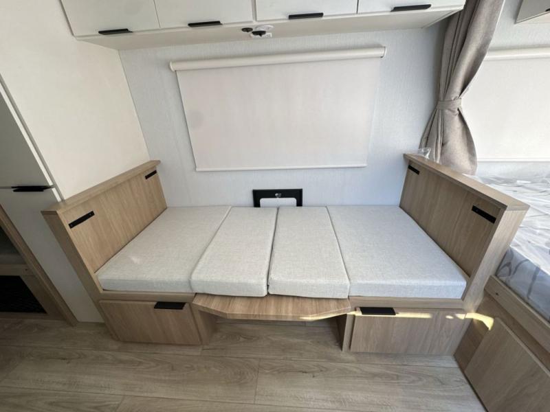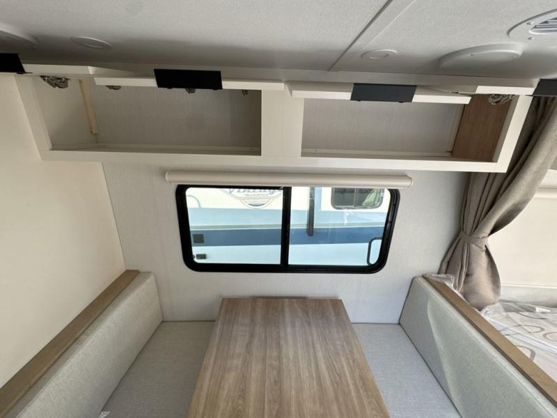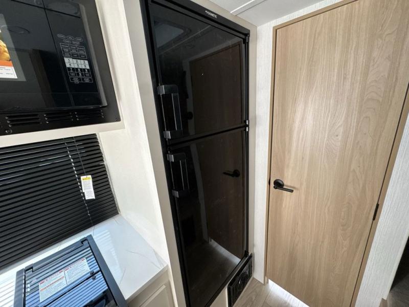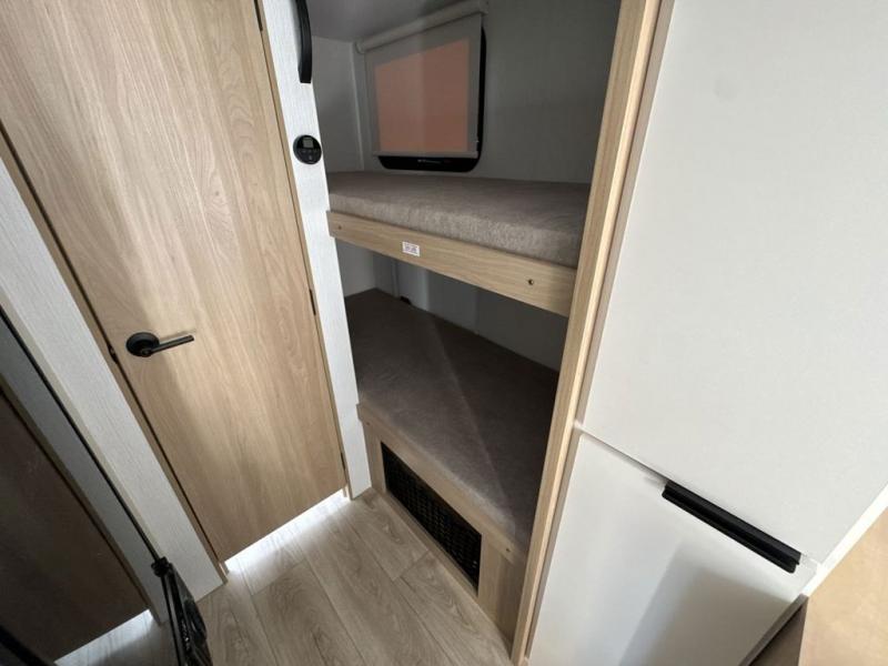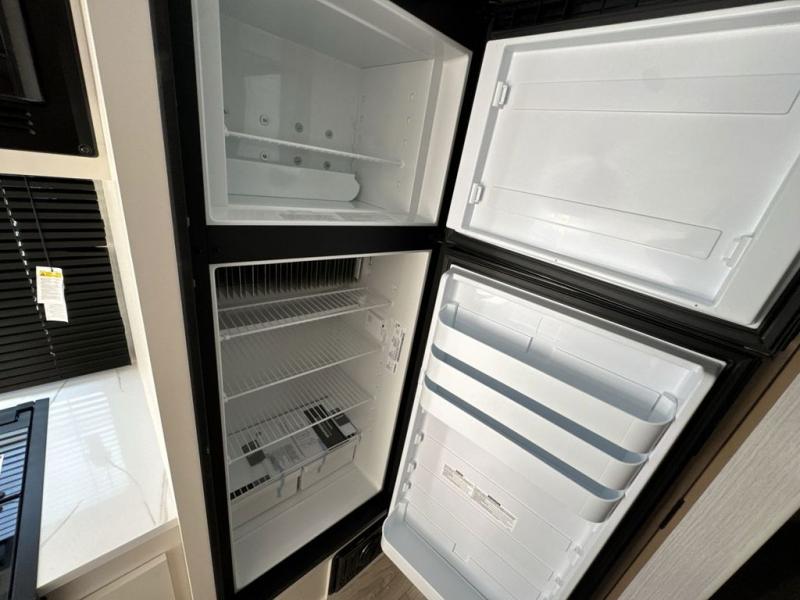 Pack your bags and load up the kids to head out on a great camping adventure as a family! There is a front 54" x 74" full-size bed for you and a set of rear corner bunk beds for the kids, plus they can bring a friend to sleep on the 32" x 74" booth dinette. You can prepare meals for the whole group with the three burner cooktop and the 10.3 cu. ft. 12V refrigerator, plus you can pop a bag of popcorn in the microwave for movie night with the Smart TV. And a private toilet and 24" x 36" shower next to the bunks and offers a great place to get ready for the day or bedtime.