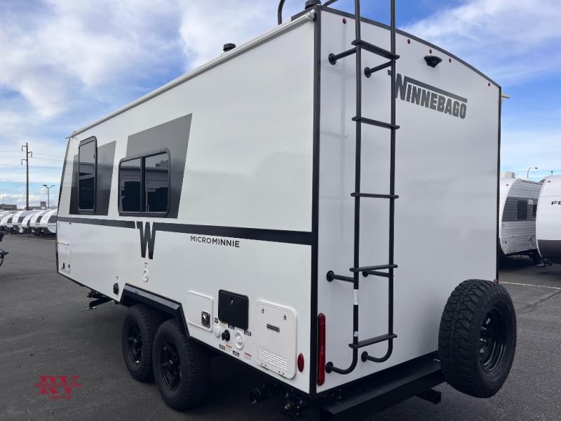 Start out on your boundless journey in one of these Winnebago Micro Minnie travel trailers! Towing is made simple with the 7' width to keep your Micro Minnie in your rear-view mirror, and even though they are compact in size, they aren't lacking in features. Each one is built with an NXG frame and fiberglass sidewalls with Azdel Onboard composite panels for added durability, plus dual Dexter TORFLEX torsion axles for smooth towing. There are also Goodyear Wrangle tires, power stabilizer jacks, a fully walkable roof and many more exterior conveniences. A 200-watt solar panel and Winnebago all-in-one control panel will provide off-grid capabilities and let you stay in control of your trailer's functions. Inside, you'll enjoy the flush mount ceiling lights, full-overlay European-style cabinetry, and JBL premium sound interior speakers, plus there is a tankless water heater to ensure your comfort!