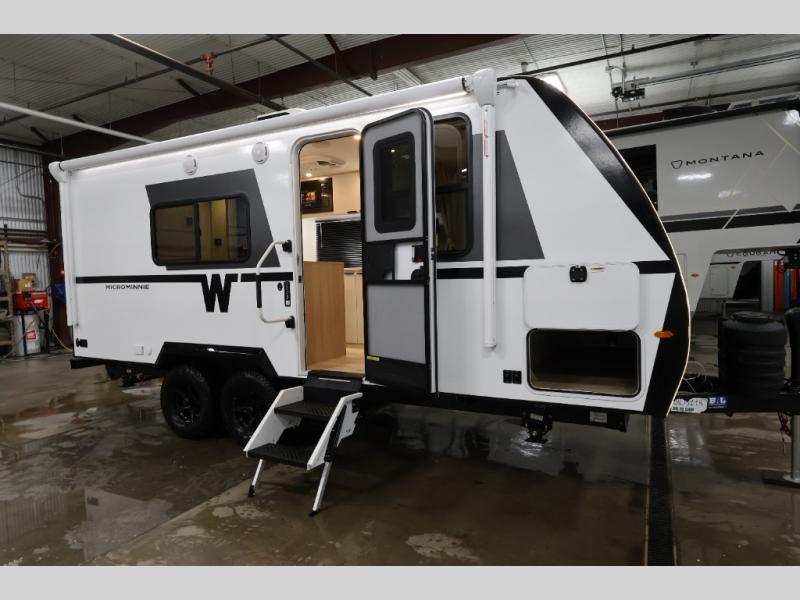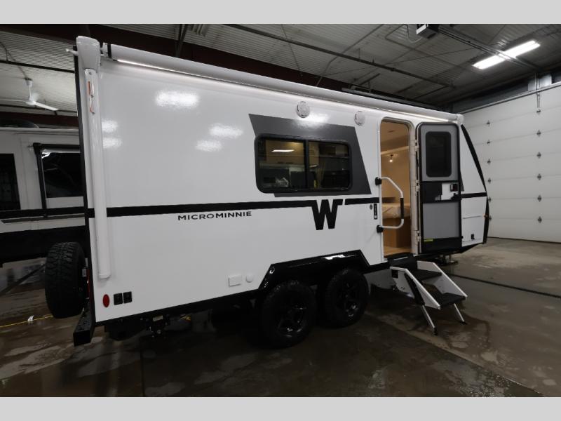 Start out on your boundless journey in one of these Winnebago Micro Minnie travel trailers! Towing is made simple with the 7' width to keep your Micro Minnie in your rear-view mirror, and even though they are compact in size, they aren't lacking in features. Each one is built with an NXG frame and fiberglass sidewalls with Azdel Onboard composite panels for added durability, plus dual Dexter TORFLEX torsion axles for smooth towing. There are also Goodyear Wrangle tires, power stabilizer jacks, a fully walkable roof and many more exterior conveniences. A 200-watt solar panel and Winnebago all-in-one control panel will provide off-grid capabilities and let you stay in control of your trailer's functions. Inside, you'll enjoy the flush mount ceiling lights, full-overlay European-style cabinetry, and JBL premium sound interior speakers, plus there is a tankless water heater to ensure your comfort!