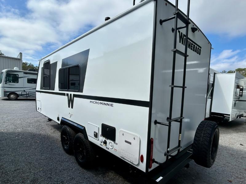 Start out on your boundless journey in one of these Winnebago Micro Minnie travel trailers! Towing is made simple with the 7' width to keep your Micro Minnie in your rear-view mirror, and even though they are compact in size, they aren't lacking in features. Each one is built with an NXG frame and fiberglass sidewalls with Azdel Onboard composite panels for added durability, plus dual Dexter TORFLEX torsion axles for smooth towing. There are also Goodyear Wrangle tires, power stabilizer jacks, a fully walkable roof and many more exterior conveniences. A 200-watt solar panel and Winnebago all-in-one control panel will provide off-grid capabilities and let you stay in control of your trailer's functions. Inside, you'll enjoy the flush mount ceiling lights, full-overlay European-style cabinetry, and JBL premium sound interior speakers, plus there is a tankless water heater to ensure your comfort!