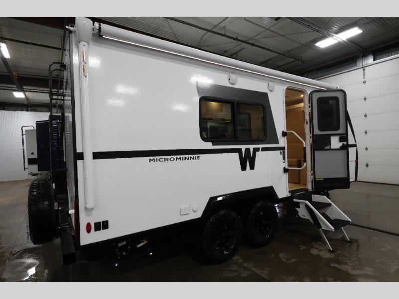 Start out on your boundless journey in one of these Winnebago Micro Minnie travel trailers! Towing is made simple with the 7' width to keep your Micro Minnie in your rear-view mirror, and even though they are compact in size, they aren't lacking in features. Each one is built with an NXG frame and fiberglass sidewalls with Azdel Onboard composite panels for added durability, plus dual Dexter TORFLEX torsion axles for smooth towing. There are also Goodyear Wrangle tires, power stabilizer jacks, a fully walkable roof and many more exterior conveniences. A 200-watt solar panel and Winnebago all-in-one control panel will provide off-grid capabilities and let you stay in control of your trailer's functions. Inside, you'll enjoy the flush mount ceiling lights, full-overlay European-style cabinetry, and JBL premium sound interior speakers, plus there is a tankless water heater to ensure your comfort!