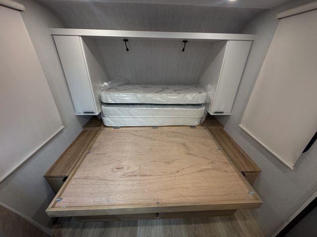 After a day of hiking, biking, or relaxing by the campfire, you’ll appreciate the full rear bathroom with plenty of space to freshen up. The pocket bath door helps maximize floor space, while the bath wardrobe and linen closet provide convenient storage for towels, clothing, and toiletries.