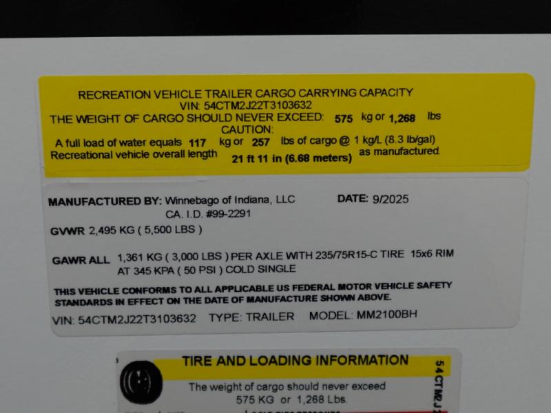New 2026 Winnebago Micro Minnie 2100BH Travel Trailer