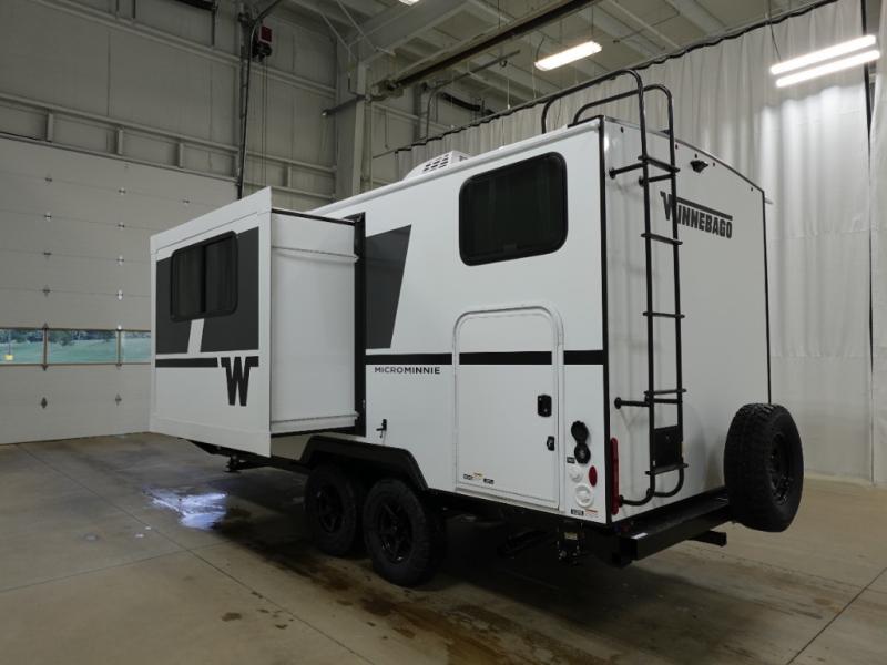 Start out on your boundless journey in one of these Winnebago Micro Minnie travel trailers! Towing is made simple with the 7' width to keep your Micro Minnie in your rear-view mirror. They don't lack in features either although they are compact in size. The spacious galley including a sink, refrigerator, a cooktop, and even a convection microwave oven allows you to cook without compromise. You will not only enjoy the entertainment found indoors with a Smart TV, a JBL premium sound system and Aura Cube high performance mechless media center, but outdoors you will also enjoy the JBL premium speakers and a power awning with LED lighting. Each model also comes with flexible exterior storage to make packing quick and easy, a 200-watt solar panel for off-grid camping, and Dexter TORFLEX torsion stub axles for smooth towing!