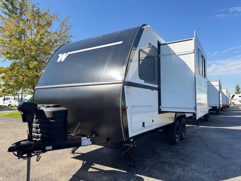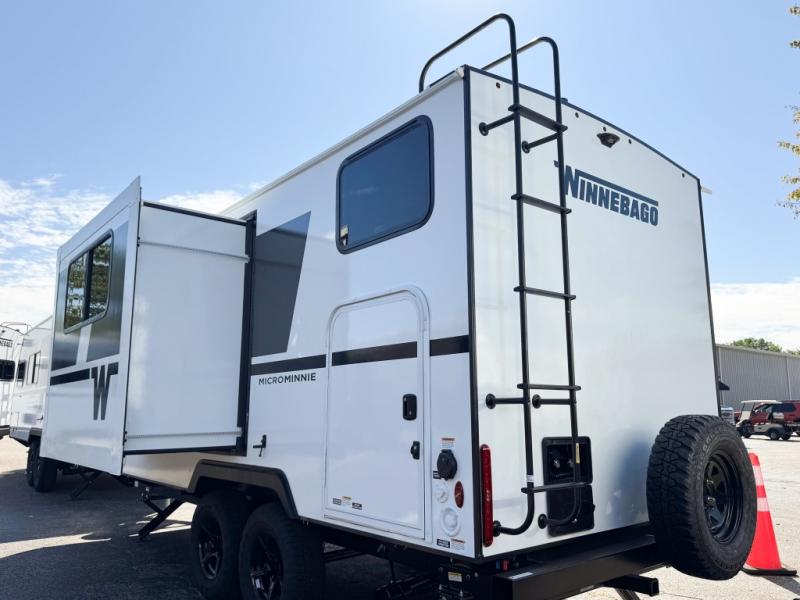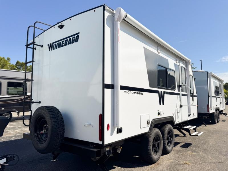 Start out on your boundless journey in one of these Winnebago Micro Minnie travel trailers! Towing is made simple with the 7' width to keep your Micro Minnie in your rear-view mirror. They don't lack in features either although they are compact in size. The spacious galley including a sink, refrigerator, a cooktop, and even a convection microwave oven allows you to cook without compromise. You will not only enjoy the entertainment found indoors with a Smart TV, a JBL premium sound system and Aura Cube high performance mechless media center, but outdoors you will also enjoy the JBL premium speakers and a power awning with LED lighting. Each model also comes with flexible exterior storage to make packing quick and easy, a 200-watt solar panel for off-grid camping, and Dexter TORFLEX torsion stub axles for smooth towing!