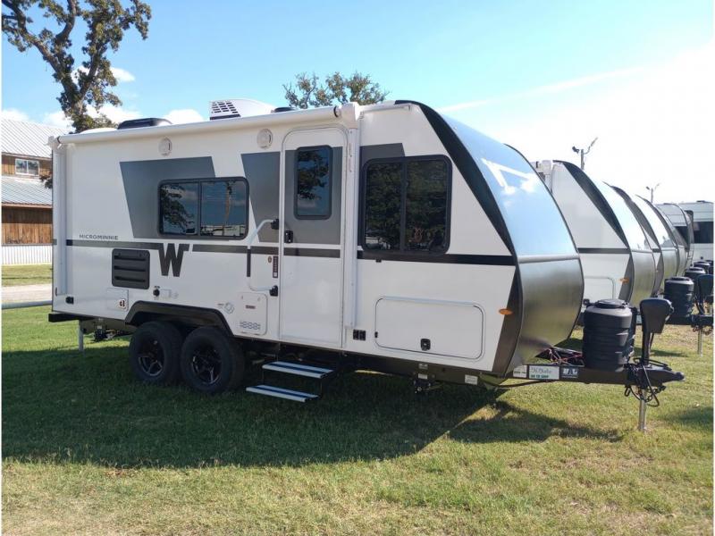 Start out on your boundless journey in one of these Winnebago Micro Minnie travel trailers! Towing is made simple with the 7' width to keep your Micro Minnie in your rear-view mirror. They don't lack in features either although they are compact in size. The spacious galley including a sink, refrigerator, a cooktop, and even a convection microwave oven allows you to cook without compromise. You will not only enjoy the entertainment found indoors with a Smart TV, a JBL premium sound system and Aura Cube high performance mechless media center, but outdoors you will also enjoy the JBL premium speakers and a power awning with LED lighting. Each model also comes with flexible exterior storage to make packing quick and easy, a 200-watt solar panel for off-grid camping, and Dexter TORFLEX torsion stub axles for smooth towing!