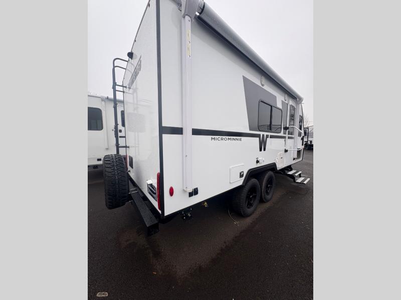 Start out on your boundless journey in one of these Winnebago Micro Minnie travel trailers! Towing is made simple with the 7' width to keep your Micro Minnie in your rear-view mirror. They don't lack in features either although they are compact in size. The spacious galley including a sink, refrigerator, a cooktop, and even a convection microwave oven allows you to cook without compromise. You will not only enjoy the entertainment found indoors with a Smart TV, a JBL premium sound system and Aura Cube high performance mechless media center, but outdoors you will also enjoy the JBL premium speakers and a power awning with LED lighting. Each model also comes with flexible exterior storage to make packing quick and easy, a 200-watt solar panel for off-grid camping, and Dexter TORFLEX torsion stub axles for smooth towing!
