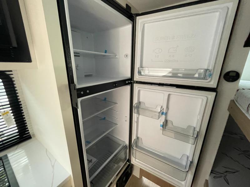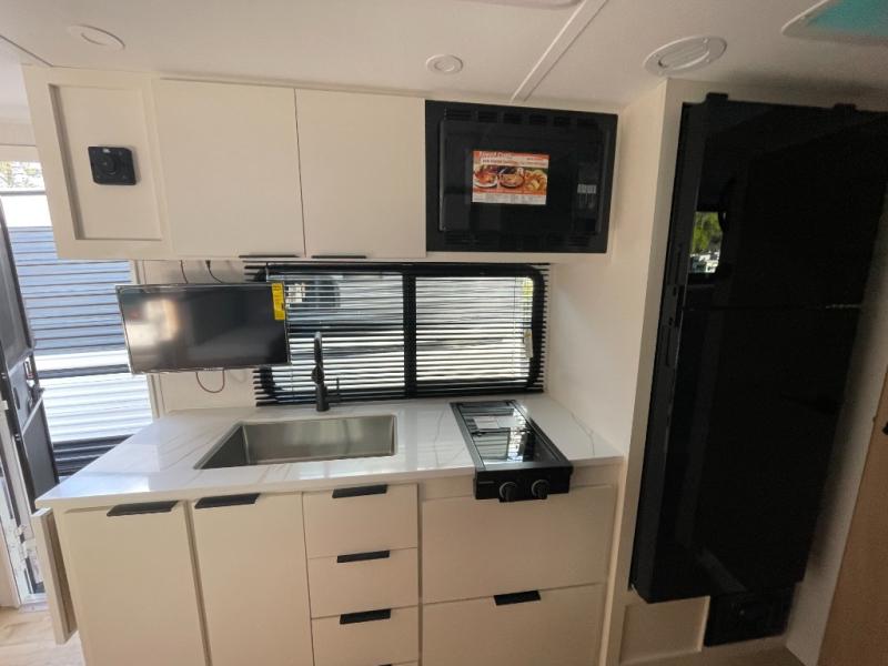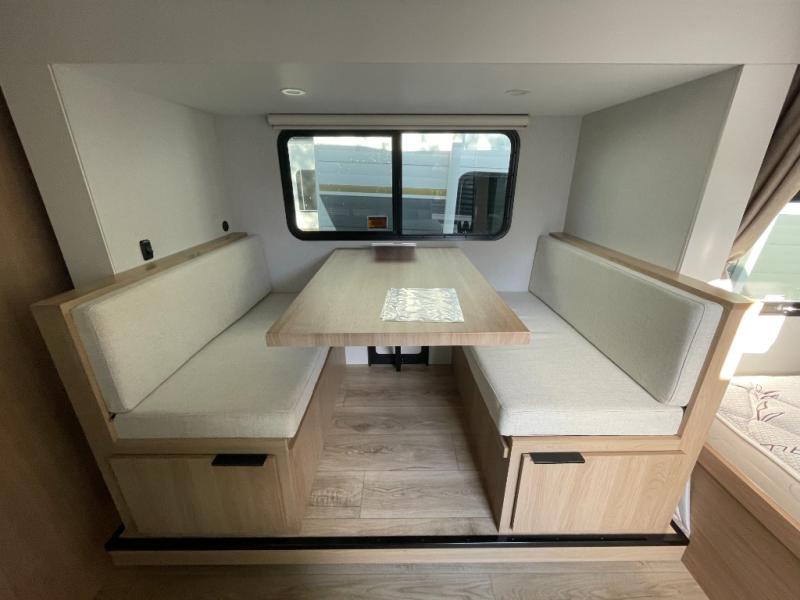 On the exterior, this travel trailer is ready for adventure with a power awning, exterior storage compartments, and lightweight construction for easy towing. Its compact size allows you to access campgrounds, national parks, and scenic byways with ease, giving you the freedom to explore new destinations without compromise.