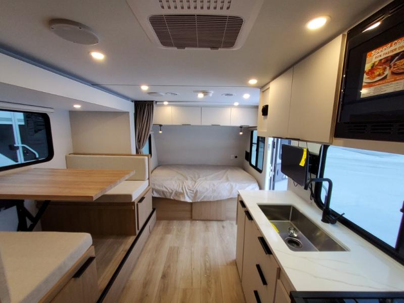 Start out on your boundless journey in one of these Winnebago Micro Minnie travel trailers! Towing is made simple with the 7' width to keep your Micro Minnie in your rear-view mirror. They don't lack in features either although they are compact in size. The spacious galley including a sink, refrigerator, a cooktop, and even a convection microwave oven allows you to cook without compromise. You will not only enjoy the entertainment found indoors with a Smart TV, a JBL premium sound system and Aura Cube high performance mechless media center, but outdoors you will also enjoy the JBL premium speakers and a power awning with LED lighting. Each model also comes with flexible exterior storage to make packing quick and easy, a 200-watt solar panel for off-grid camping, and Dexter TORFLEX torsion stub axles for smooth towing!