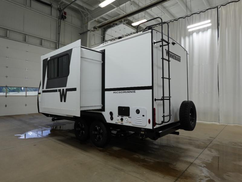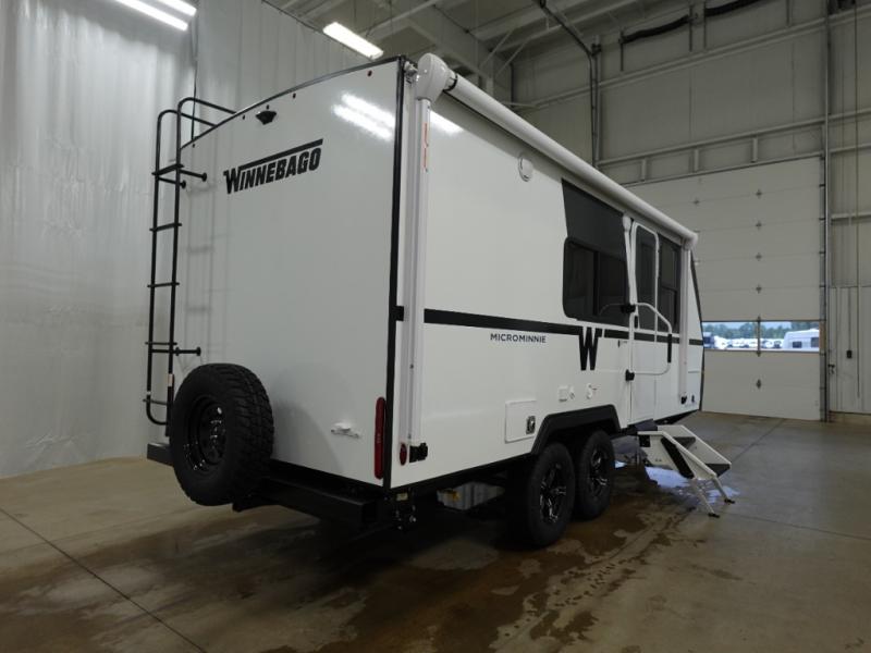 Start out on your boundless journey in one of these Winnebago Micro Minnie travel trailers! Towing is made simple with the 7' width to keep your Micro Minnie in your rear-view mirror. They don't lack in features either although they are compact in size. The spacious galley including a sink, refrigerator, a cooktop, and even a convection microwave oven allows you to cook without compromise. You will not only enjoy the entertainment found indoors with a Smart TV, a JBL premium sound system and Aura Cube high performance mechless media center, but outdoors you will also enjoy the JBL premium speakers and a power awning with LED lighting. Each model also comes with flexible exterior storage to make packing quick and easy, a 200-watt solar panel for off-grid camping, and Dexter TORFLEX torsion stub axles for smooth towing!