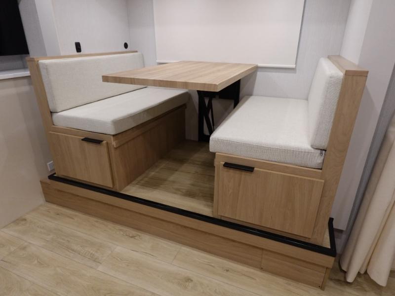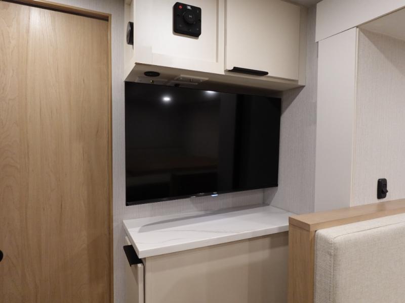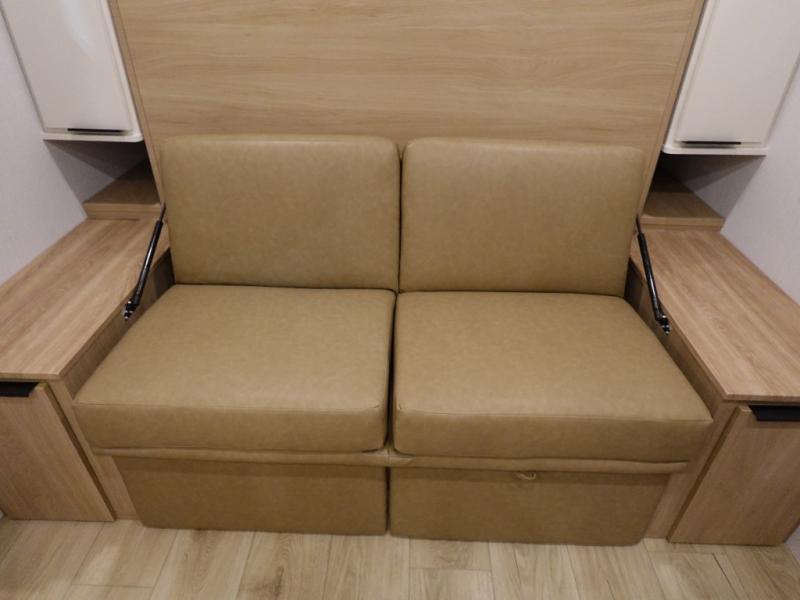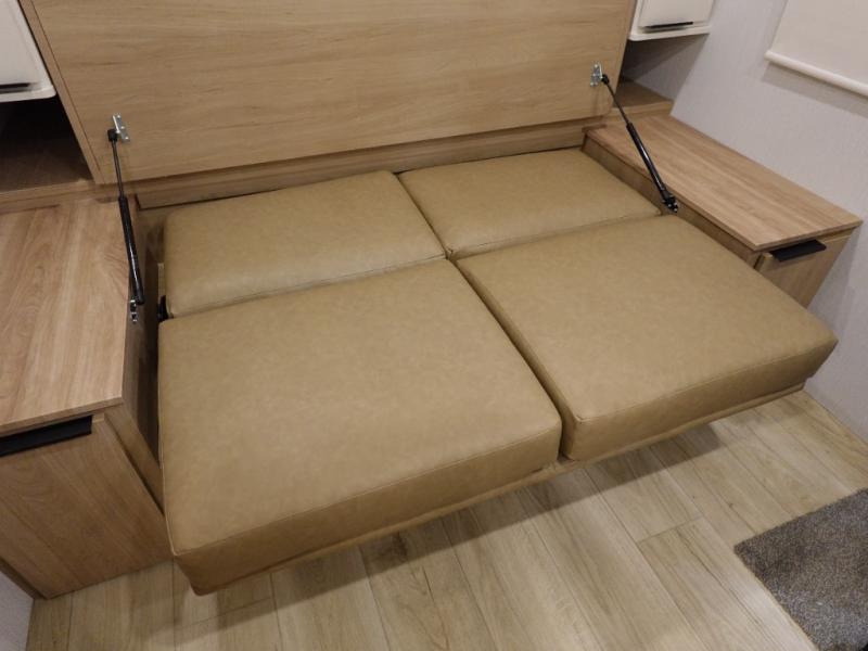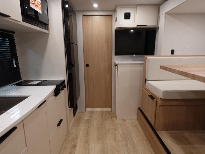 If you're looking for versatility then you need this travel trailer! Depending on the time of day you enter will determine whether you see the Murphy bed or the sofa up front. A slide out 44" x 72" booth dinette can be used for dining, playing games, and sleeping space at night. The full rear bathroom is equipped with everything you will need to freshen up each morning and features a wardrobe for your clothing and linens, and a pocket door into the bath saves space in the main room. The Smart TV is conveniently located so you can watch your favorite shows from the sofa or Murphy bed as well as the dinette, plus the pantry offers a place to store your snacks and such for easy access. The cook in your bunch will love all the amenities to make meals including the handy flip-up counter for more prep space.