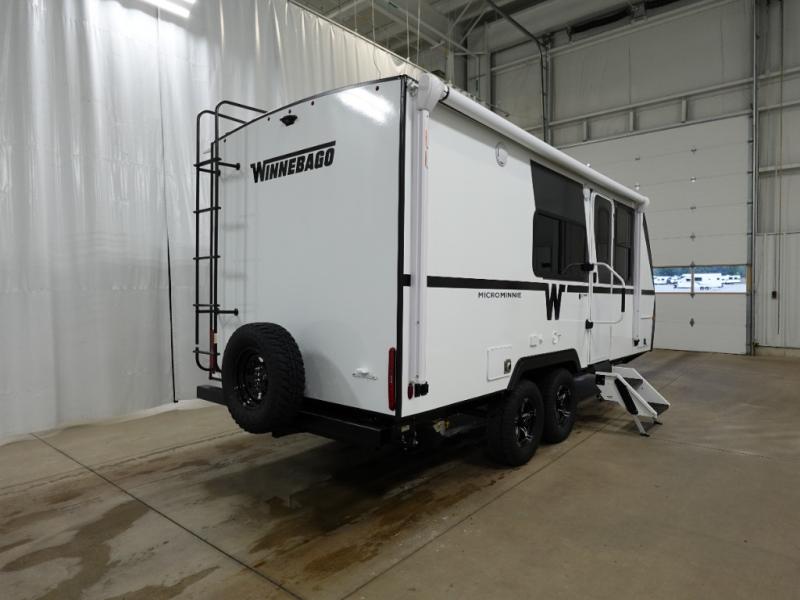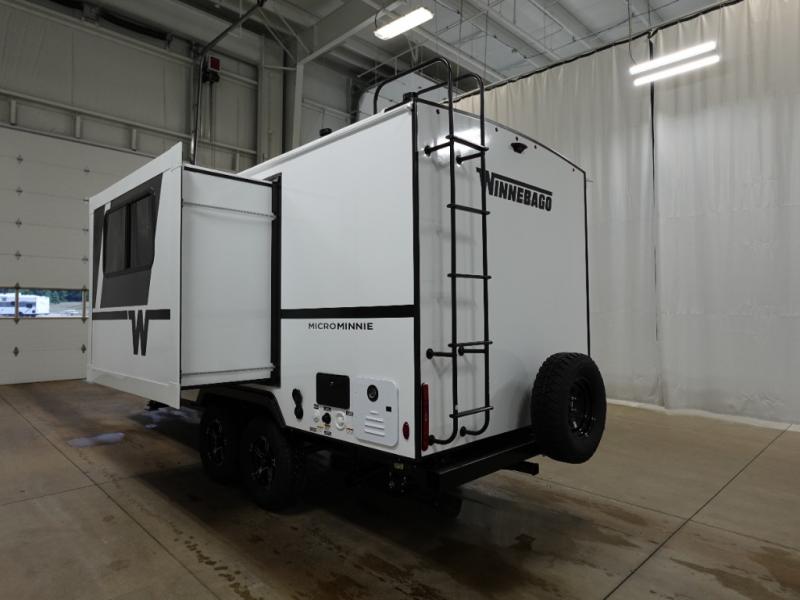 Start out on your boundless journey in one of these Winnebago Micro Minnie travel trailers! Towing is made simple with the 7' width to keep your Micro Minnie in your rear-view mirror. They don't lack in features either although they are compact in size. The spacious galley including a sink, refrigerator, a cooktop, and even a convection microwave oven allows you to cook without compromise. You will not only enjoy the entertainment found indoors with a Smart TV, a JBL premium sound system and Aura Cube high performance mechless media center, but outdoors you will also enjoy the JBL premium speakers and a power awning with LED lighting. Each model also comes with flexible exterior storage to make packing quick and easy, a 200-watt solar panel for off-grid camping, and Dexter TORFLEX torsion stub axles for smooth towing!