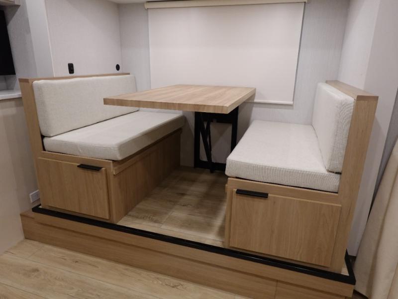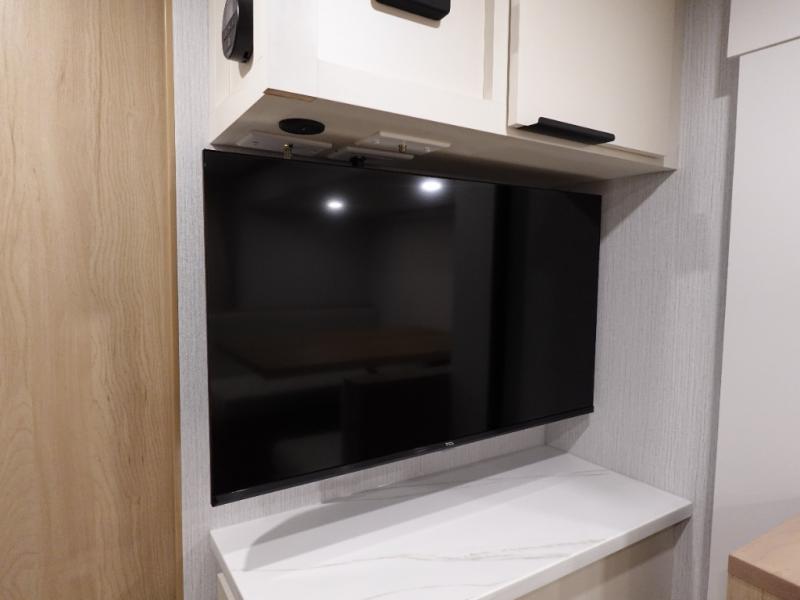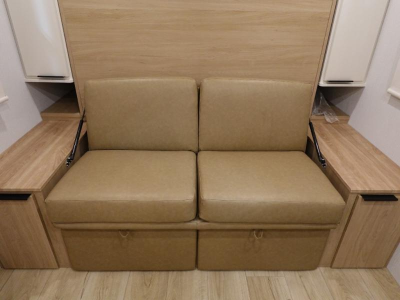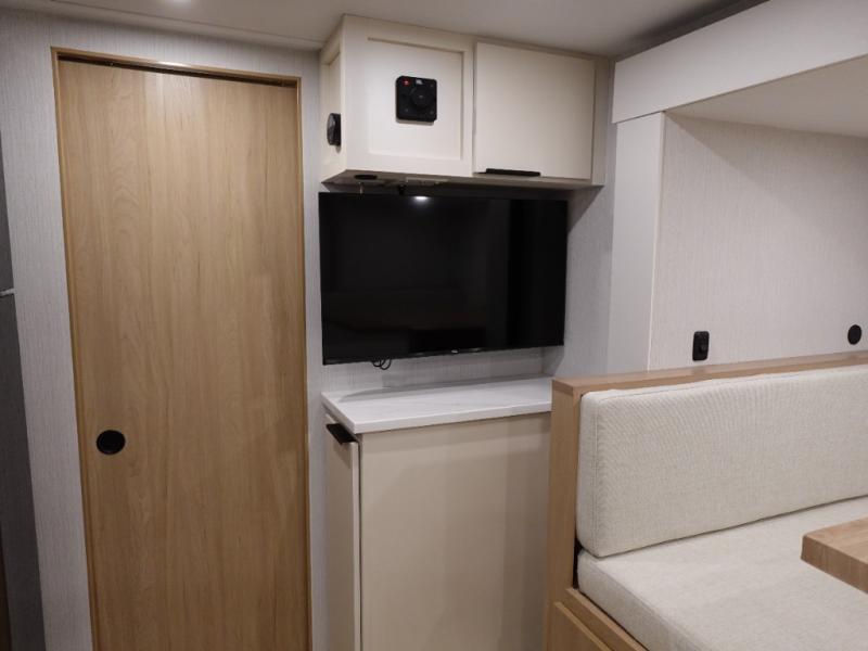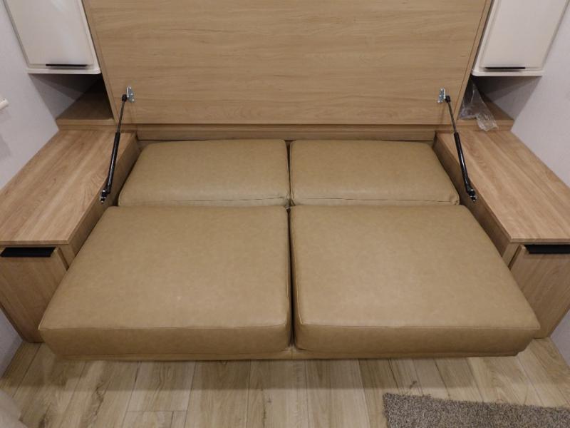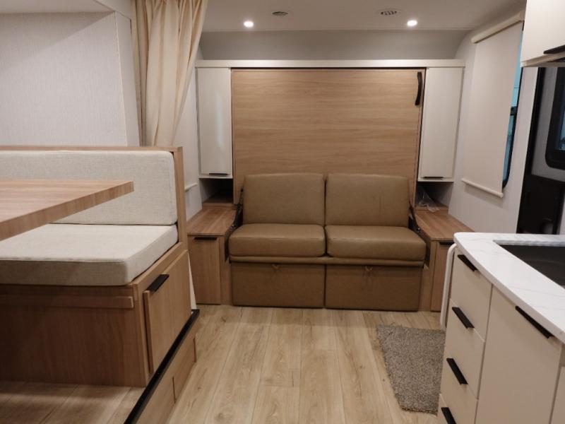 If you're looking for versatility then you need this travel trailer! Depending on the time of day you enter will determine whether you see the Murphy bed or the sofa up front. A slide out 44" x 72" booth dinette can be used for dining, playing games, and sleeping space at night. The full rear bathroom is equipped with everything you will need to freshen up each morning and features a wardrobe for your clothing and linens, and a pocket door into the bath saves space in the main room. The Smart TV is conveniently located so you can watch your favorite shows from the sofa or Murphy bed as well as the dinette, plus the pantry offers a place to store your snacks and such for easy access. The cook in your bunch will love all the amenities to make meals including the handy flip-up counter for more prep space.