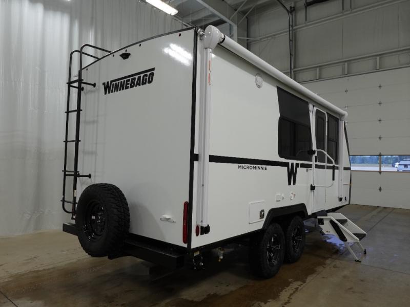 Start out on your boundless journey in one of these Winnebago Micro Minnie travel trailers! Towing is made simple with the 7' width to keep your Micro Minnie in your rear-view mirror. They don't lack in features either although they are compact in size. The spacious galley including a sink, refrigerator, a cooktop, and even a convection microwave oven allows you to cook without compromise. You will not only enjoy the entertainment found indoors with a Smart TV, a JBL premium sound system and Aura Cube high performance mechless media center, but outdoors you will also enjoy the JBL premium speakers and a power awning with LED lighting. Each model also comes with flexible exterior storage to make packing quick and easy, a 200-watt solar panel for off-grid camping, and Dexter TORFLEX torsion stub axles for smooth towing!