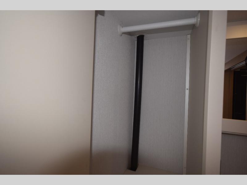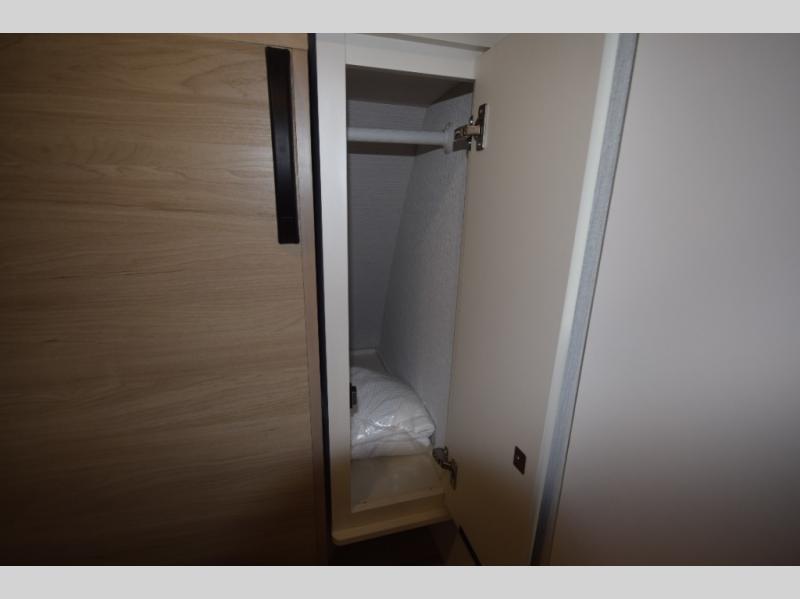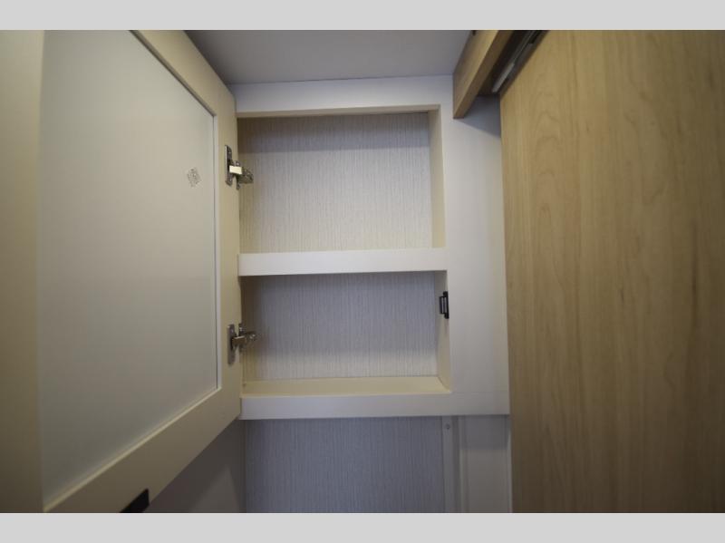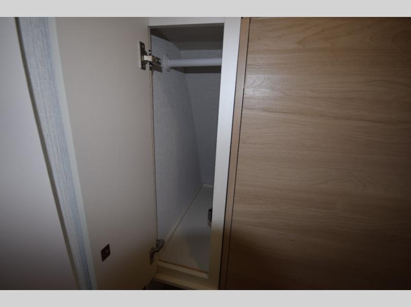 Enjoy a full-width rear bath with a large shower, toilet, and a roomy wardrobe closet to store towels, clothes, and more. The space-saving pocket door helps keep the main living area open and accessible.