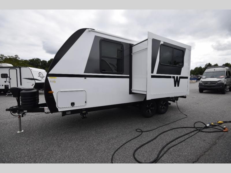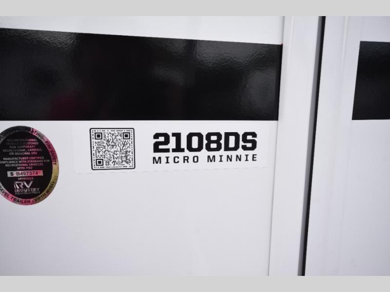 The Micro Minnie 2108DS by Winnebago Towables is the perfect blend of modern comfort and lightweight towability. With a 7' wide frame and compact design, it's easy to handle on the road—yet packed with all the amenities you need to feel right at home wherever you park.