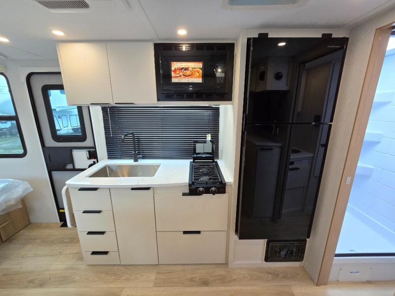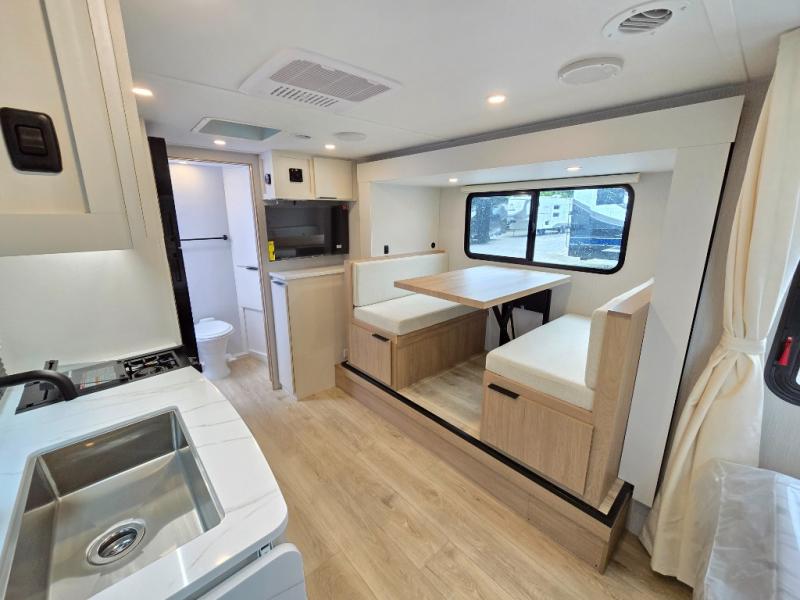 Start out on your boundless journey in one of these Winnebago Micro Minnie travel trailers! Towing is made simple with the 7' width to keep your Micro Minnie in your rear-view mirror. They don't lack in features either although they are compact in size. The spacious galley including a sink, refrigerator, a cooktop, and even a convection microwave oven allows you to cook without compromise. You will not only enjoy the entertainment found indoors with a Smart TV, a JBL premium sound system and Aura Cube high performance mechless media center, but outdoors you will also enjoy the JBL premium speakers and a power awning with LED lighting. Each model also comes with flexible exterior storage to make packing quick and easy, a 200-watt solar panel for off-grid camping, and Dexter TORFLEX torsion stub axles for smooth towing!