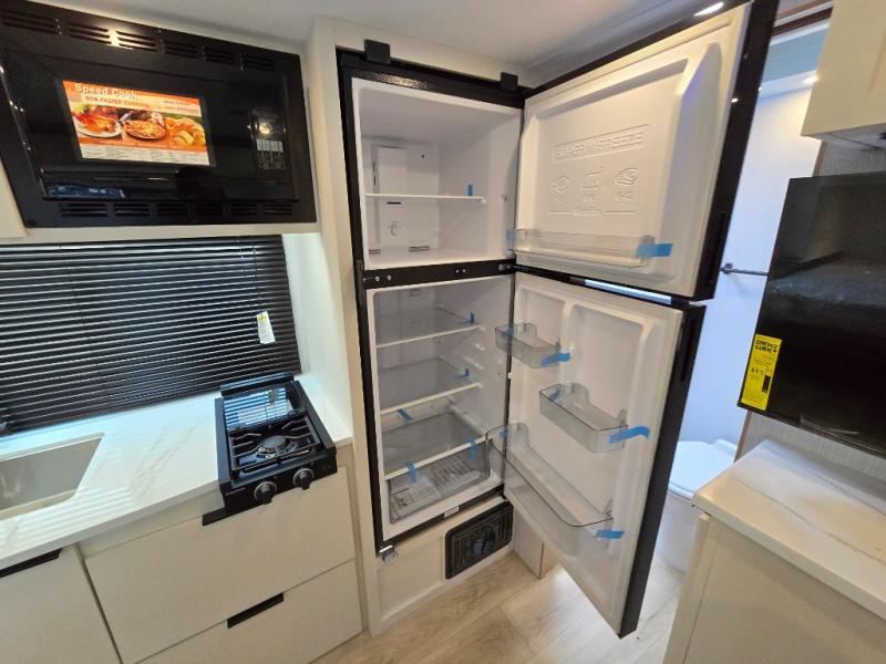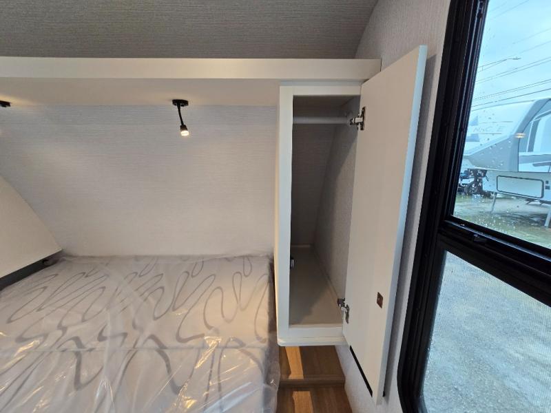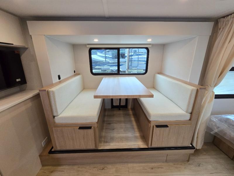 If you're looking for versatility then you need this travel trailer! Depending on the time of day you enter will determine whether you see the Murphy bed or the sofa up front. A slide out 44" x 72" booth dinette can be used for dining, playing games, and sleeping space at night. The full rear bathroom is equipped with everything you will need to freshen up each morning and features a wardrobe for your clothing and linens, and a pocket door into the bath saves space in the main room. The Smart TV is conveniently located so you can watch your favorite shows from the sofa or Murphy bed as well as the dinette, plus the pantry offers a place to store your snacks and such for easy access. The cook in your bunch will love all the amenities to make meals including the handy flip-up counter for more prep space.
