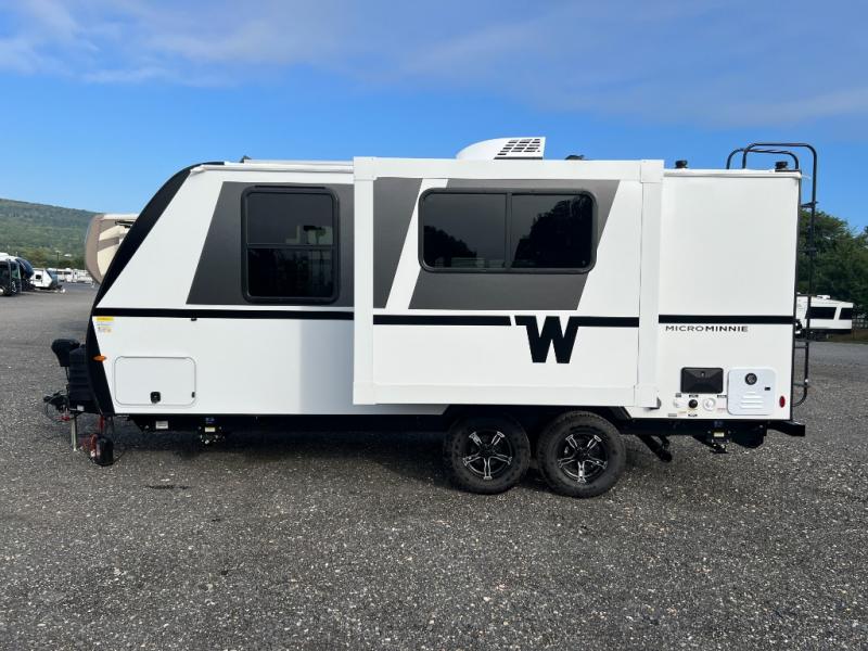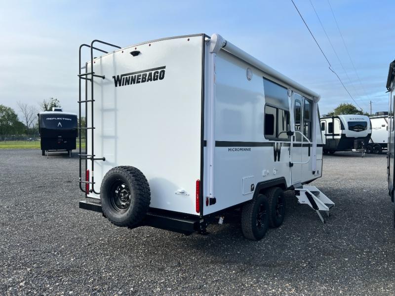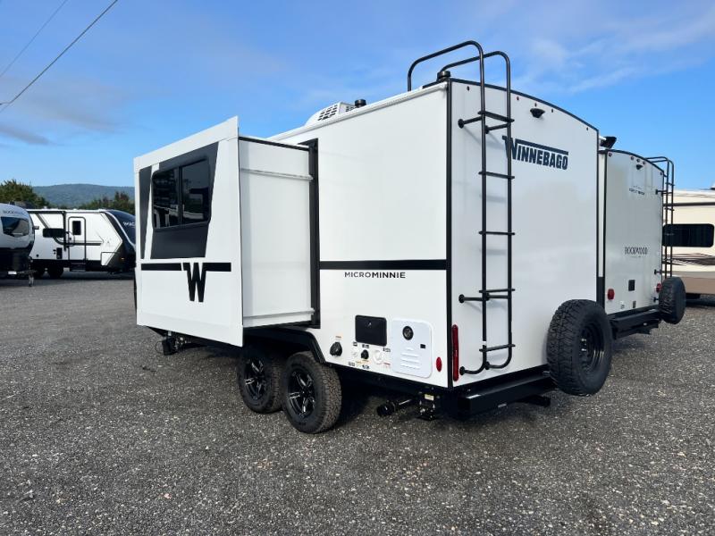 Start out on your boundless journey in one of these Winnebago Micro Minnie travel trailers! Towing is made simple with the 7' width to keep your Micro Minnie in your rear-view mirror. They don't lack in features either although they are compact in size. The spacious galley including a sink, refrigerator, a cooktop, and even a convection microwave oven allows you to cook without compromise. You will not only enjoy the entertainment found indoors with a Smart TV, a JBL premium sound system and Aura Cube high performance mechless media center, but outdoors you will also enjoy the JBL premium speakers and a power awning with LED lighting. Each model also comes with flexible exterior storage to make packing quick and easy, a 200-watt solar panel for off-grid camping, and Dexter TORFLEX torsion stub axles for smooth towing!