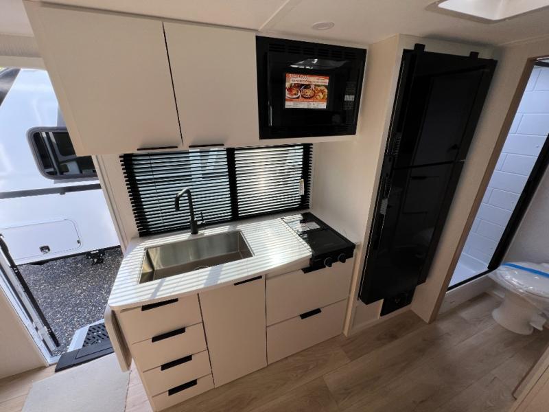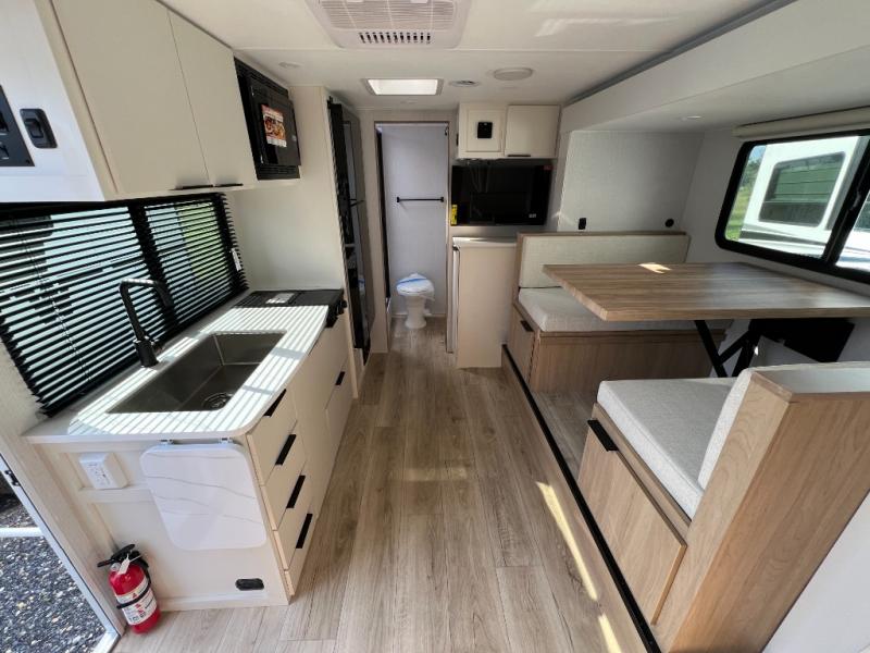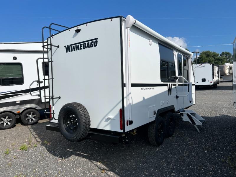 Start out on your boundless journey in one of these Winnebago Micro Minnie travel trailers! Towing is made simple with the 7' width to keep your Micro Minnie in your rear-view mirror. They don't lack in features either although they are compact in size. The spacious galley including a sink, refrigerator, a cooktop, and even a convection microwave oven allows you to cook without compromise. You will not only enjoy the entertainment found indoors with a Smart TV, a JBL premium sound system and Aura Cube high performance mechless media center, but outdoors you will also enjoy the JBL premium speakers and a power awning with LED lighting. Each model also comes with flexible exterior storage to make packing quick and easy, a 200-watt solar panel for off-grid camping, and Dexter TORFLEX torsion stub axles for smooth towing!