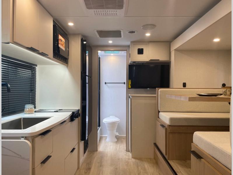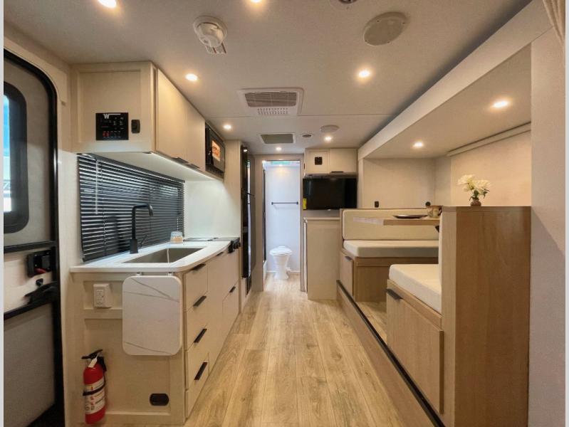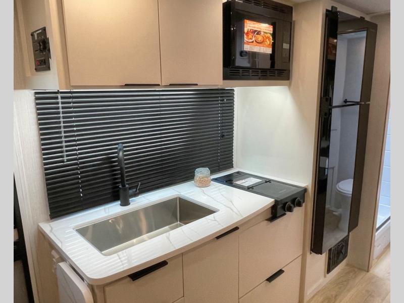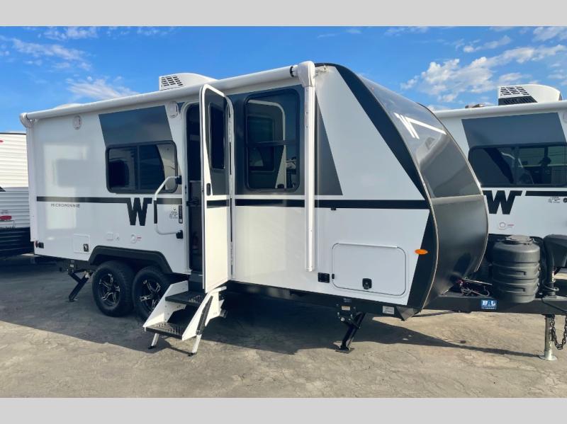 Start out on your boundless journey in one of these Winnebago Micro Minnie travel trailers! Towing is made simple with the 7' width to keep your Micro Minnie in your rear-view mirror. They don't lack in features either although they are compact in size. The spacious galley including a sink, refrigerator, a cooktop, and even a convection microwave oven allows you to cook without compromise. You will not only enjoy the entertainment found indoors with a Smart TV, a JBL premium sound system and Aura Cube high performance mechless media center, but outdoors you will also enjoy the JBL premium speakers and a power awning with LED lighting. Each model also comes with flexible exterior storage to make packing quick and easy, a 200-watt solar panel for off-grid camping, and Dexter TORFLEX torsion stub axles for smooth towing!