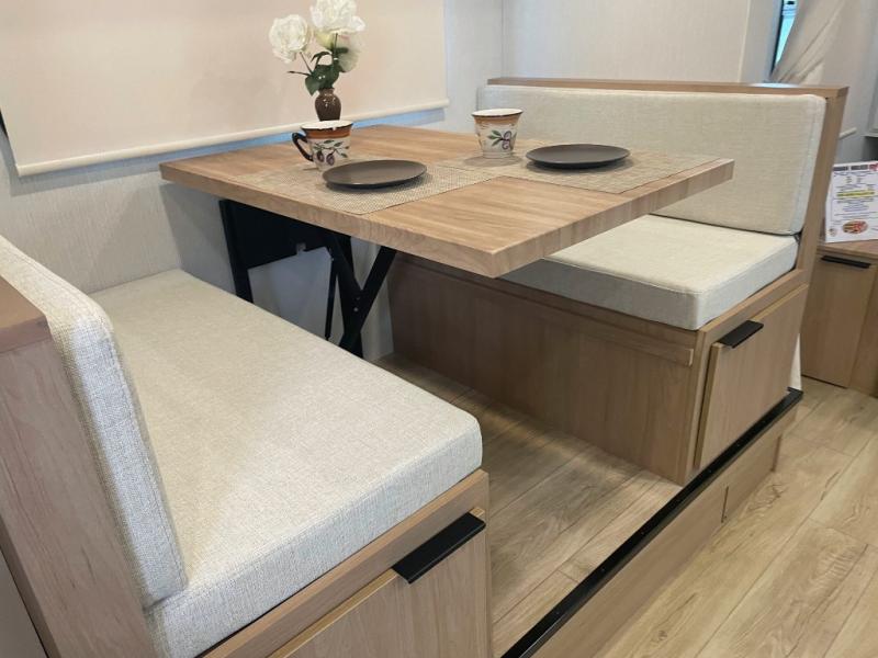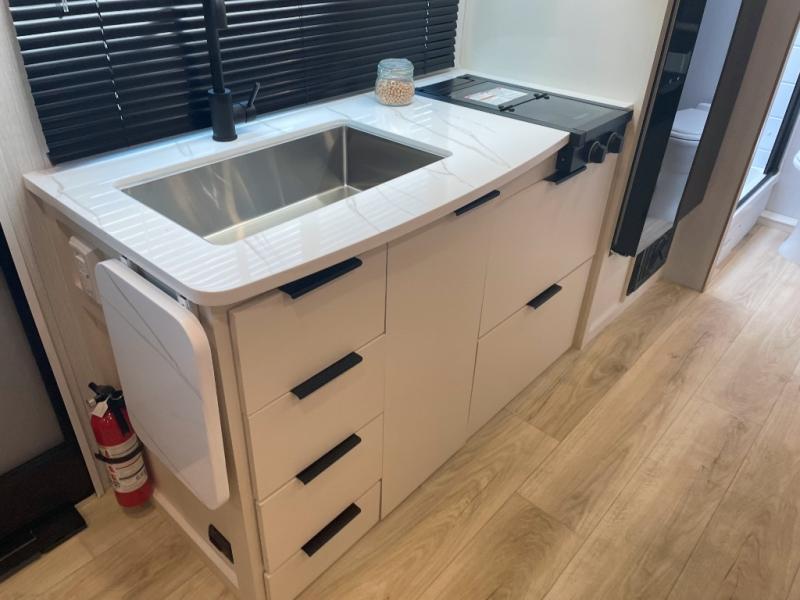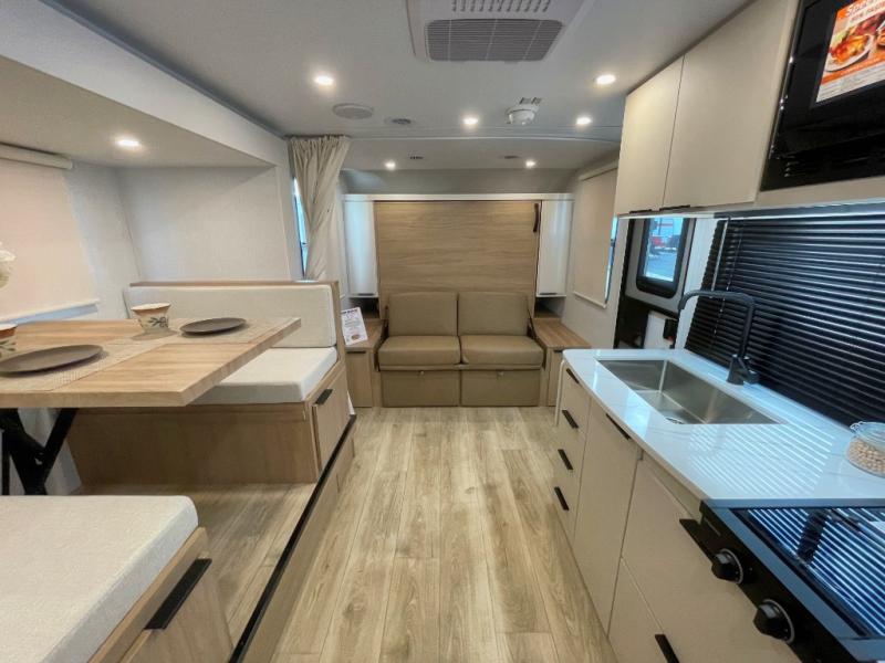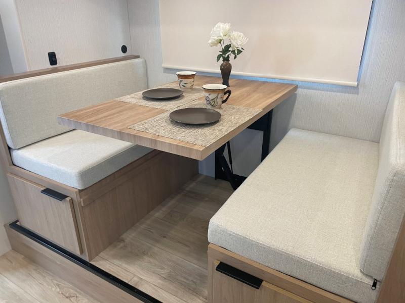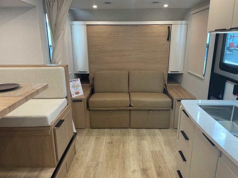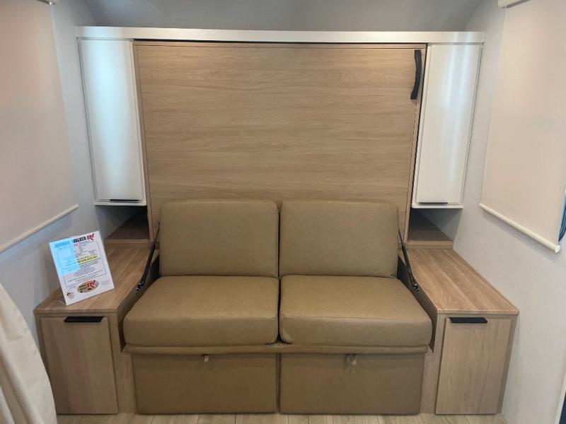 If you're looking for versatility then you need this travel trailer! Depending on the time of day you enter will determine whether you see the Murphy bed or the sofa up front. A slide out 44" x 72" booth dinette can be used for dining, playing games, and sleeping space at night. The full rear bathroom is equipped with everything you will need to freshen up each morning and features a wardrobe for your clothing and linens, and a pocket door into the bath saves space in the main room. The Smart TV is conveniently located so you can watch your favorite shows from the sofa or Murphy bed as well as the dinette, plus the pantry offers a place to store your snacks and such for easy access. The cook in your bunch will love all the amenities to make meals including the handy flip-up counter for more prep space.