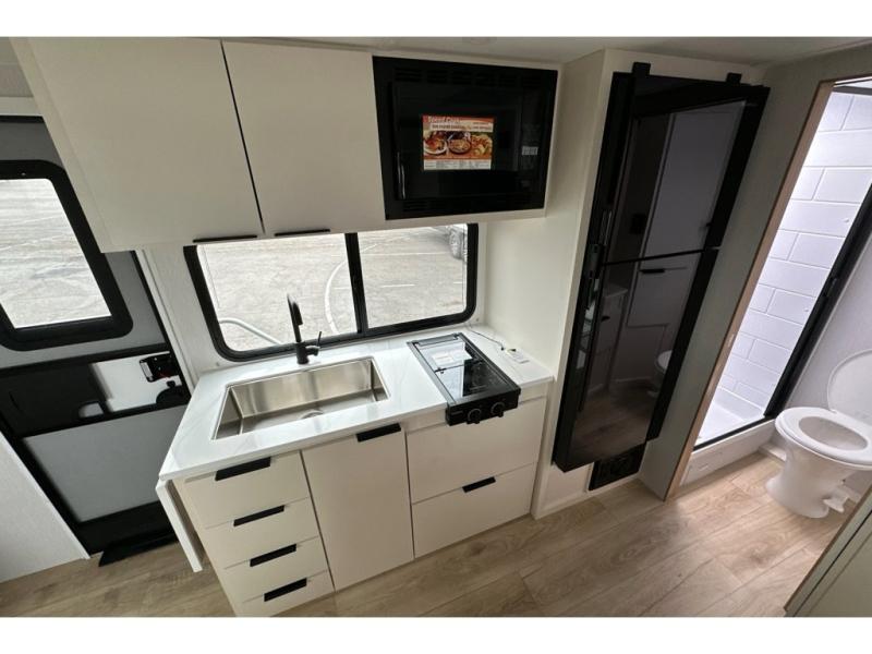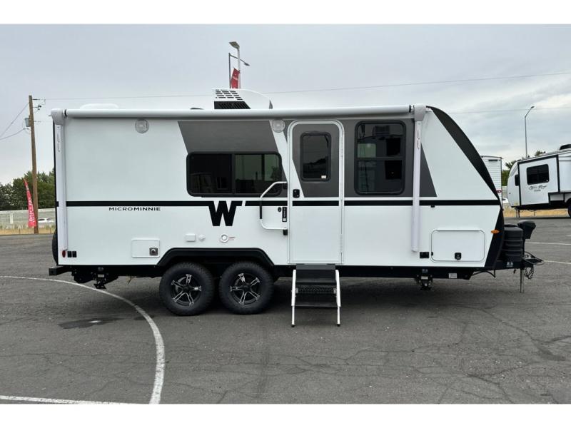Start out on your boundless journey in one of these Winnebago Industries Towables Micro Minnie travel trailers! Towing is made simple with the 7' width to keep your Micro Minnie in your rear-view mirror. They don't lack in features either although they are compact in size. The spacious galley including a sink, refrigerator, a cooktop, and even a convection microwave oven allows you to cook without compromise. You will not only enjoy the entertainment found indoors with a Smart TV, a JBL premium sound system and Aura Cube high performance mechless media center, but outdoors you will also enjoy the JBL premium speakers and a power awning with LED lighting. Each model also comes with flexible exterior storage to make packing quick and easy, a 200-watt solar panel for off-grid camping, and Dexter TORFLEX torsion stub axles for smooth towing!