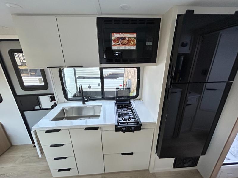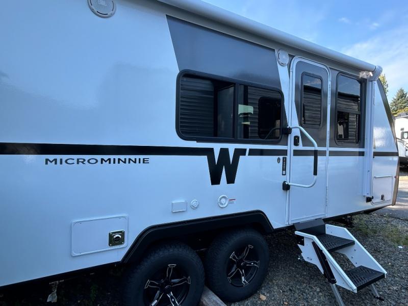 Start out on your boundless journey in one of these Winnebago Micro Minnie travel trailers! Towing is made simple with the 7' width to keep your Micro Minnie in your rear-view mirror. They don't lack in features either although they are compact in size. The spacious galley including a sink, refrigerator, a cooktop, and even a convection microwave oven allows you to cook without compromise. You will not only enjoy the entertainment found indoors with a Smart TV, a JBL premium sound system and Aura Cube high performance mechless media center, but outdoors you will also enjoy the JBL premium speakers and a power awning with LED lighting. Each model also comes with flexible exterior storage to make packing quick and easy, a 200-watt solar panel for off-grid camping, and Dexter TORFLEX torsion stub axles for smooth towing!