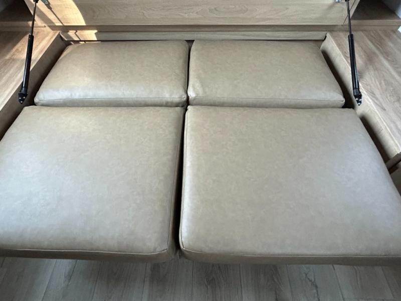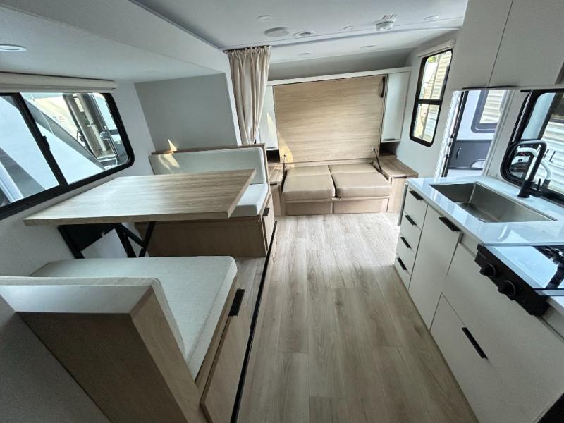 If you're looking for versatility then you need this travel trailer! Depending on the time of day you enter will determine whether you see the Murphy bed or the sofa up front. A slide out 44" x 72" booth dinette can be used for dining, playing games, and sleeping space at night. The full rear bathroom is equipped with everything you will need to freshen up each morning and features a wardrobe for your clothing and linens, and a pocket door into the bath saves space in the main room. The Smart TV is conveniently located so you can watch your favorite shows from the sofa or Murphy bed as well as the dinette, plus the pantry offers a place to store your snacks and such for easy access. The cook in your bunch will love all the amenities to make meals including the handy flip-up counter for more prep space.