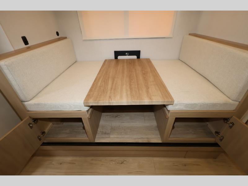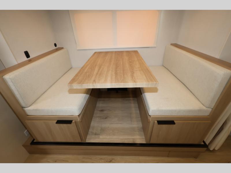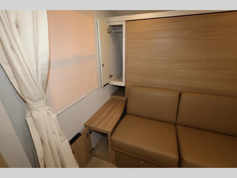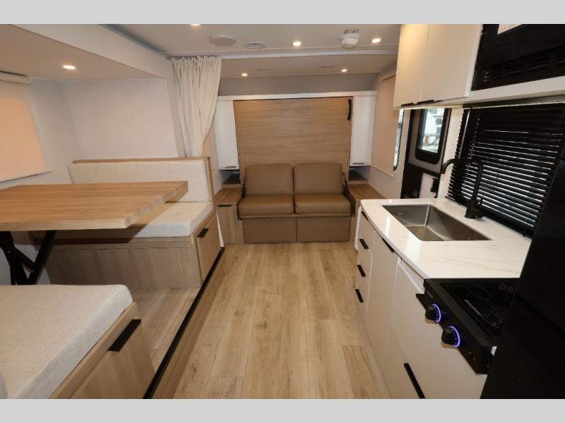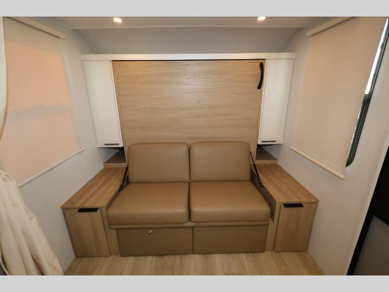 If you're looking for versatility then you need this travel trailer! Depending on the time of day you enter will determine whether you see the Murphy bed or the sofa up front. A slide out 44" x 72" booth dinette can be used for dining, playing games, and sleeping space at night. The full rear bathroom is equipped with everything you will need to freshen up each morning and features a wardrobe for your clothing and linens, and a pocket door into the bath saves space in the main room. The Smart TV is conveniently located so you can watch your favorite shows from the sofa or Murphy bed as well as the dinette, plus the pantry offers a place to store your snacks and such for easy access. The cook in your bunch will love all the amenities to make meals including the handy flip-up counter for more prep space.