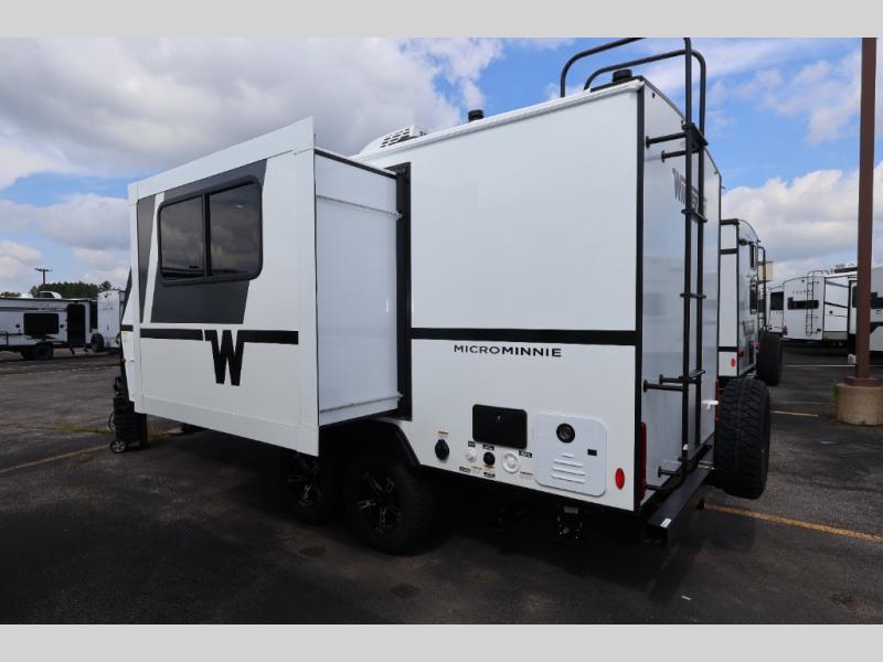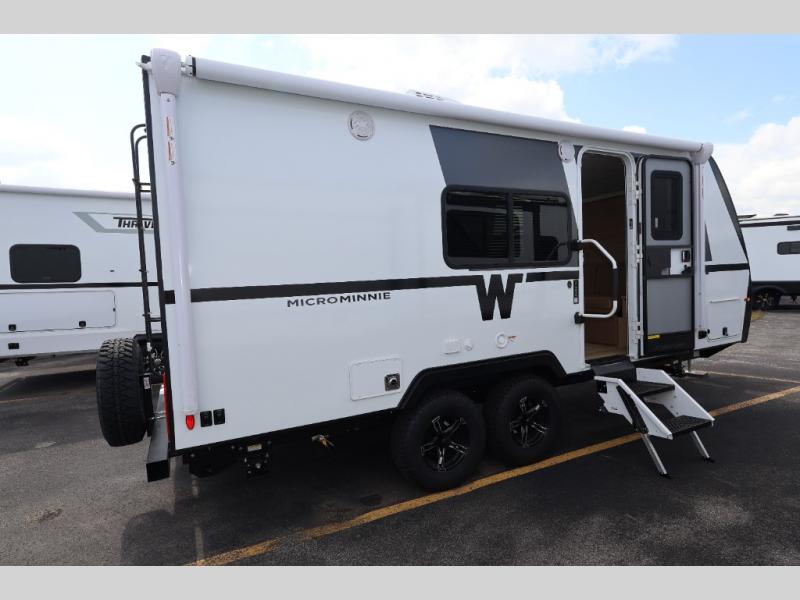 Start out on your boundless journey in one of these Winnebago Micro Minnie travel trailers! Towing is made simple with the 7' width to keep your Micro Minnie in your rear-view mirror. They don't lack in features either although they are compact in size. The spacious galley including a sink, refrigerator, a cooktop, and even a convection microwave oven allows you to cook without compromise. You will not only enjoy the entertainment found indoors with a Smart TV, a JBL premium sound system and Aura Cube high performance mechless media center, but outdoors you will also enjoy the JBL premium speakers and a power awning with LED lighting. Each model also comes with flexible exterior storage to make packing quick and easy, a 200-watt solar panel for off-grid camping, and Dexter TORFLEX torsion stub axles for smooth towing!