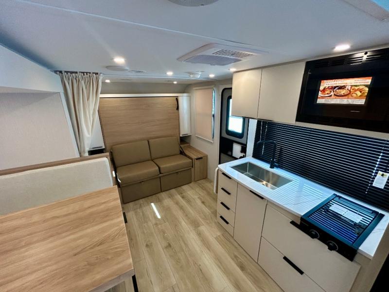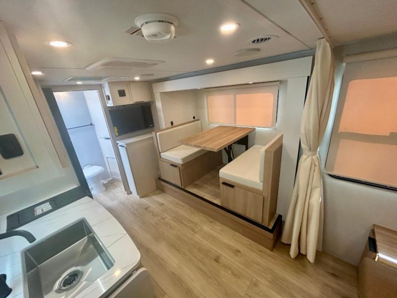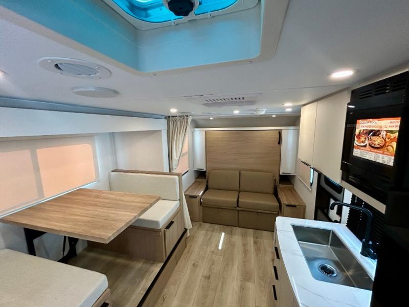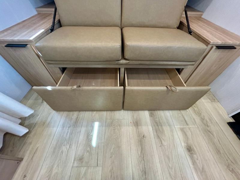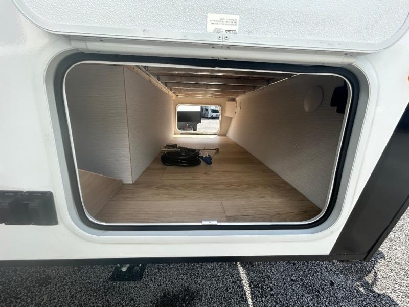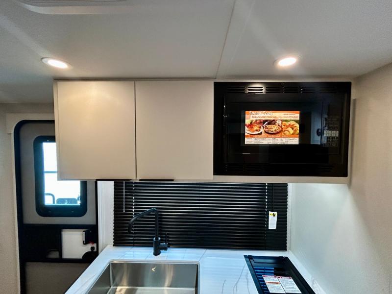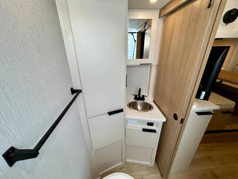 If you're looking for versatility then you need this travel trailer! Depending on the time of day you enter will determine whether you see the Murphy bed or the sofa up front. A slide out 44" x 72" booth dinette can be used for dining, playing games, and sleeping space at night. The full rear bathroom is equipped with everything you will need to freshen up each morning and features a wardrobe for your clothing and linens, and a pocket door into the bath saves space in the main room. The Smart TV is conveniently located so you can watch your favorite shows from the sofa or Murphy bed as well as the dinette, plus the pantry offers a place to store your snacks and such for easy access. The cook in your bunch will love all the amenities to make meals including the handy flip-up counter for more prep space.