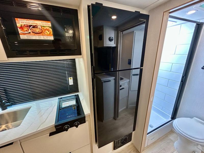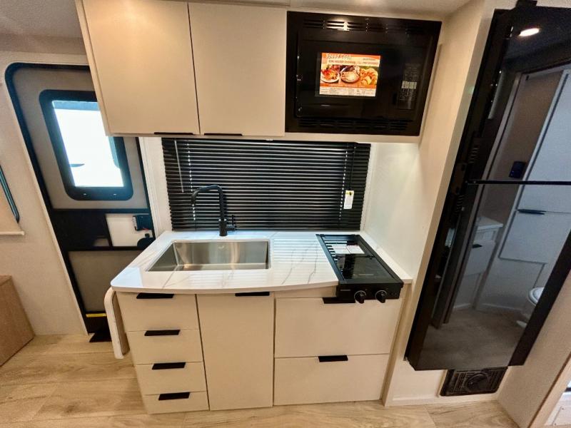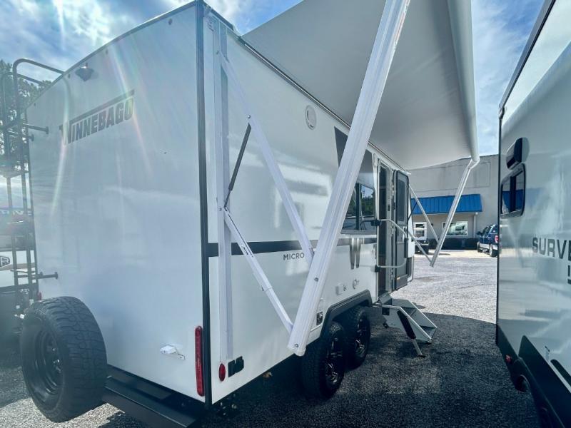 Start out on your boundless journey in one of these Winnebago Micro Minnie travel trailers! Towing is made simple with the 7' width to keep your Micro Minnie in your rear-view mirror. They don't lack in features either although they are compact in size. The spacious galley including a sink, refrigerator, a cooktop, and even a convection microwave oven allows you to cook without compromise. You will not only enjoy the entertainment found indoors with a Smart TV, a JBL premium sound system and Aura Cube high performance mechless media center, but outdoors you will also enjoy the JBL premium speakers and a power awning with LED lighting. Each model also comes with flexible exterior storage to make packing quick and easy, a 200-watt solar panel for off-grid camping, and Dexter TORFLEX torsion stub axles for smooth towing!