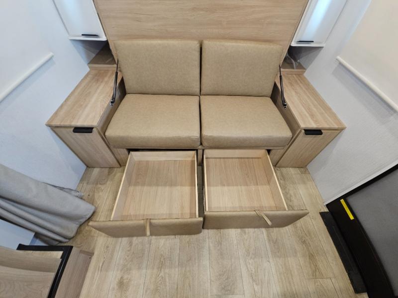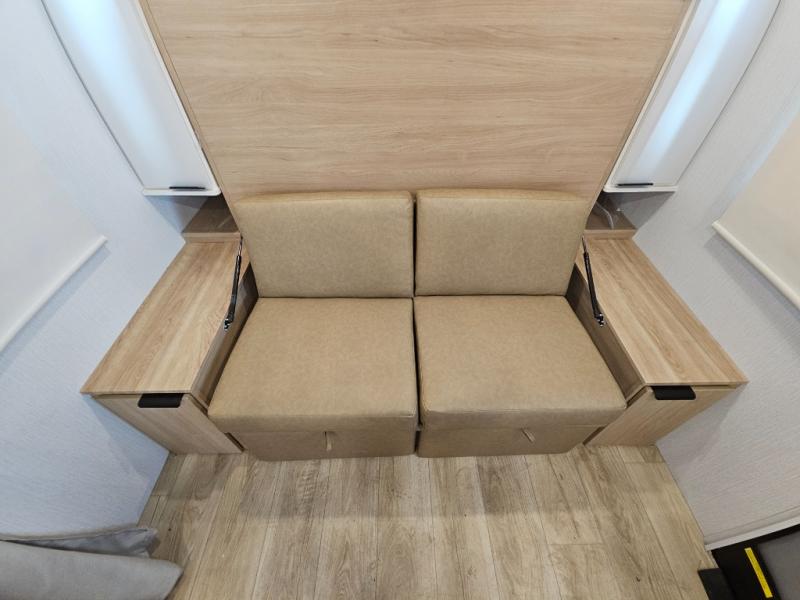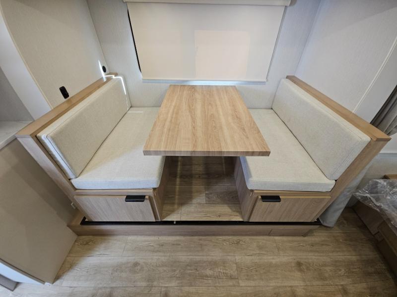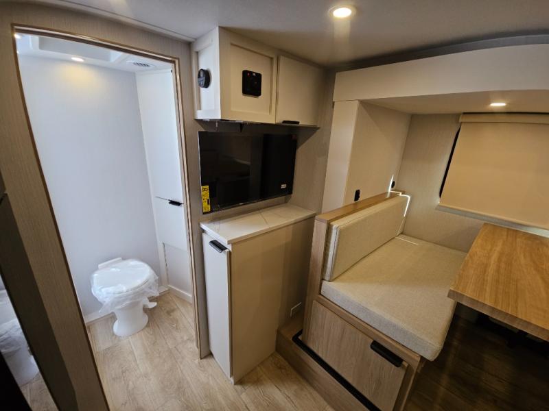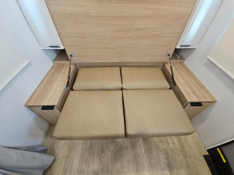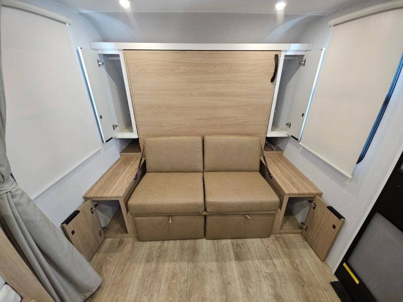 If you're looking for versatility then you need this travel trailer! Depending on the time of day you enter will determine whether you see the Murphy bed or the sofa up front. A slide out 44" x 72" booth dinette can be used for dining, playing games, and sleeping space at night. The full rear bathroom is equipped with everything you will need to freshen up each morning and features a wardrobe for your clothing and linens, and a pocket door into the bath saves space in the main room. The Smart TV is conveniently located so you can watch your favorite shows from the sofa or Murphy bed as well as the dinette, plus the pantry offers a place to store your snacks and such for easy access. The cook in your bunch will love all the amenities to make meals including the handy flip-up counter for more prep space.