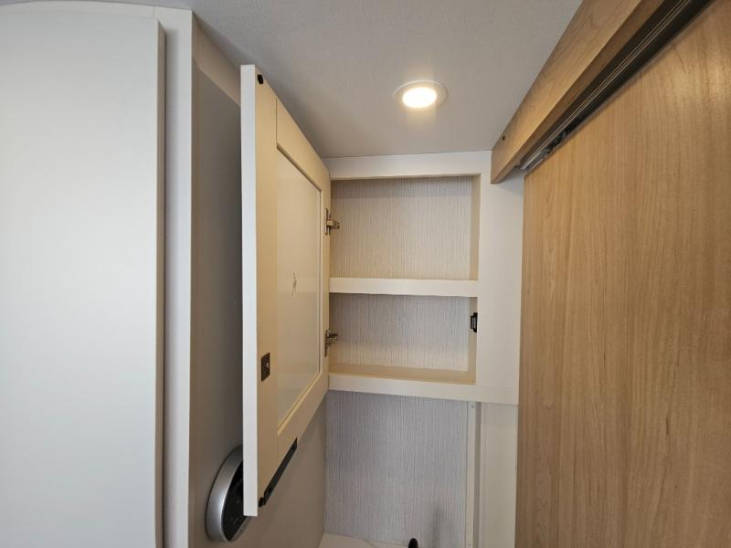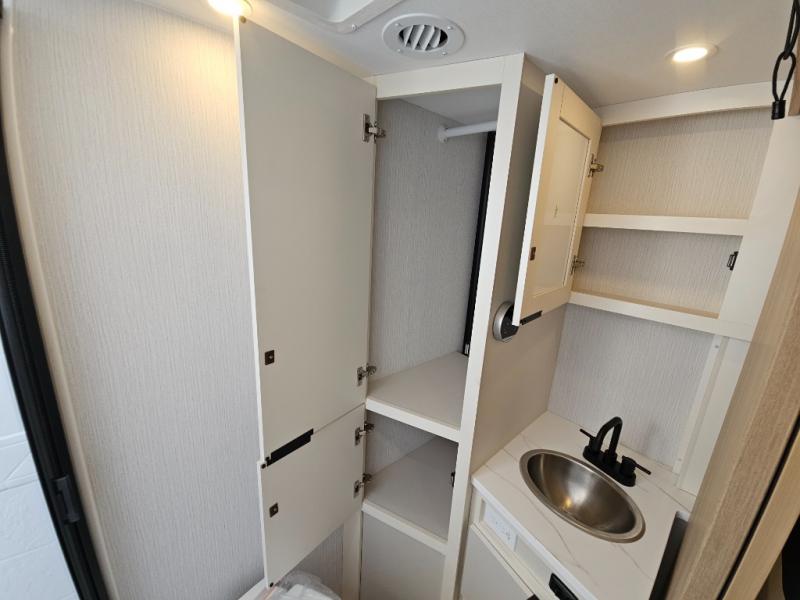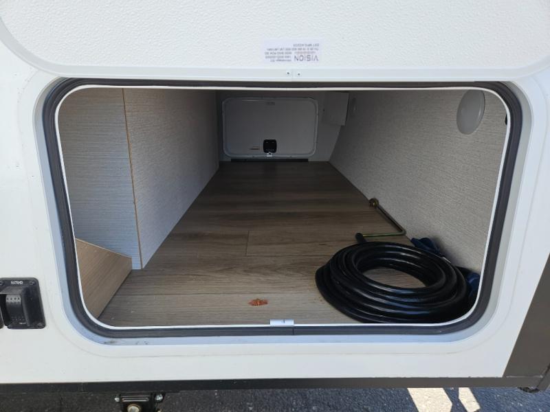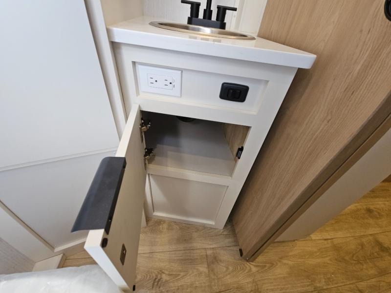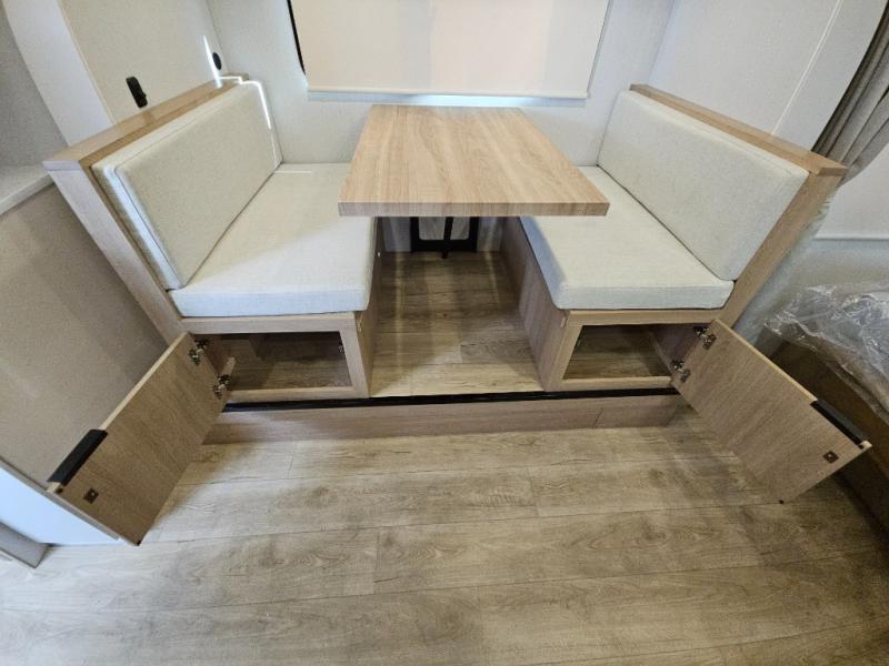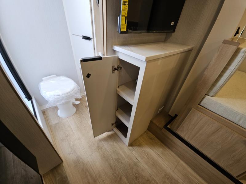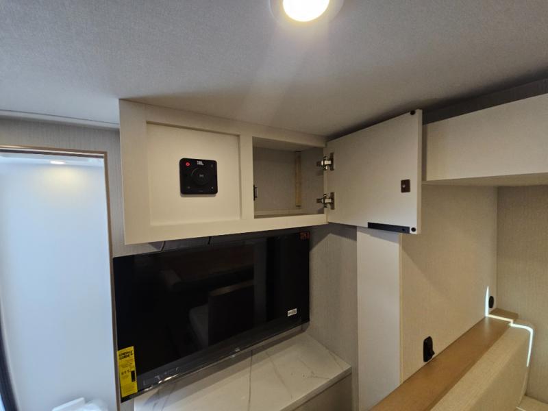 If you're looking for versatility then you need this travel trailer! Depending on the time of day you enter will determine whether you see the Murphy bed or the sofa up front. A slide out 44" x 72" booth dinette can be used for dining, playing games, and sleeping space at night. The full rear bathroom is equipped with everything you will need to freshen up each morning and features a wardrobe for your clothing and linens, and a pocket door into the bath saves space in the main room. The Smart TV is conveniently located so you can watch your favorite shows from the sofa or Murphy bed as well as the dinette, plus the pantry offers a place to store your snacks and such for easy access. The cook in your bunch will love all the amenities to make meals including the handy flip-up counter for more prep space.