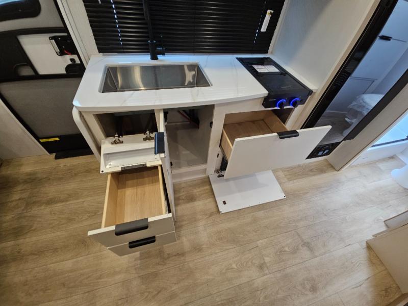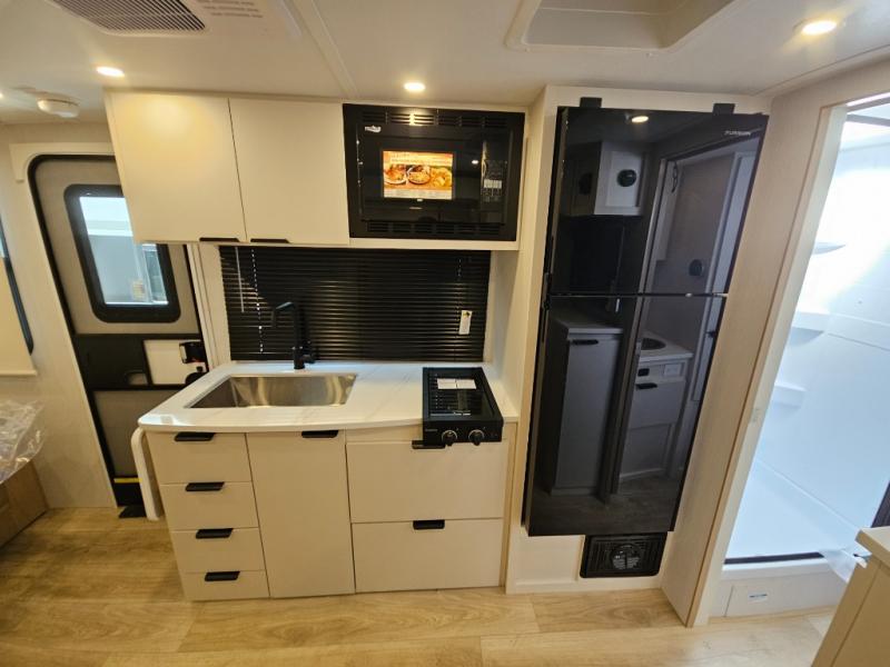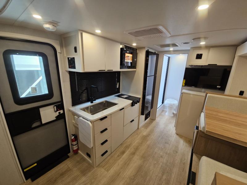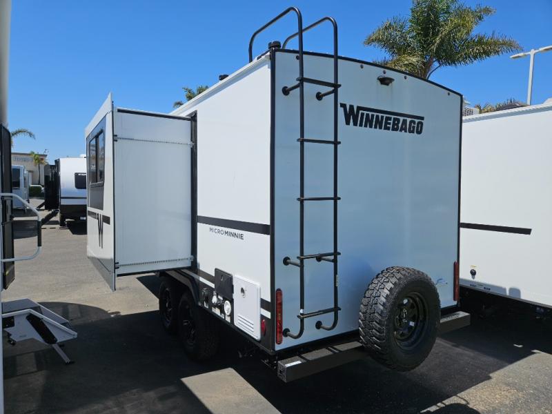 Start out on your boundless journey in one of these Winnebago Micro Minnie travel trailers! Towing is made simple with the 7' width to keep your Micro Minnie in your rear-view mirror. They don't lack in features either although they are compact in size. The spacious galley including a sink, refrigerator, a cooktop, and even a convection microwave oven allows you to cook without compromise. You will not only enjoy the entertainment found indoors with a Smart TV, a JBL premium sound system and Aura Cube high performance mechless media center, but outdoors you will also enjoy the JBL premium speakers and a power awning with LED lighting. Each model also comes with flexible exterior storage to make packing quick and easy, a 200-watt solar panel for off-grid camping, and Dexter TORFLEX torsion stub axles for smooth towing!