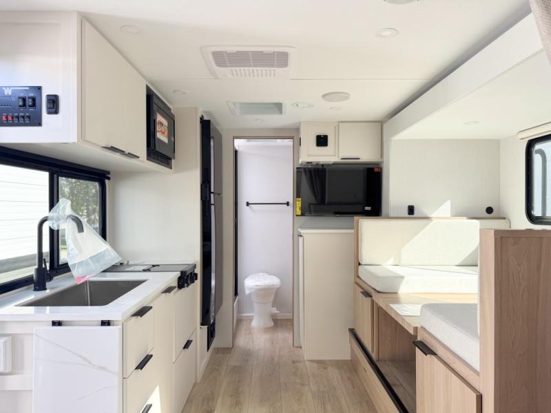 Start out on your boundless journey in one of these Winnebago Micro Minnie travel trailers! Towing is made simple with the 7' width to keep your Micro Minnie in your rear-view mirror. They don't lack in features either although they are compact in size. The spacious galley including a sink, refrigerator, a cooktop, and even a convection microwave oven allows you to cook without compromise. You will not only enjoy the entertainment found indoors with a Smart TV, a JBL premium sound system and Aura Cube high performance mechless media center, but outdoors you will also enjoy the JBL premium speakers and a power awning with LED lighting. Each model also comes with flexible exterior storage to make packing quick and easy, a 200-watt solar panel for off-grid camping, and Dexter TORFLEX torsion stub axles for smooth towing!