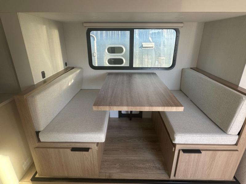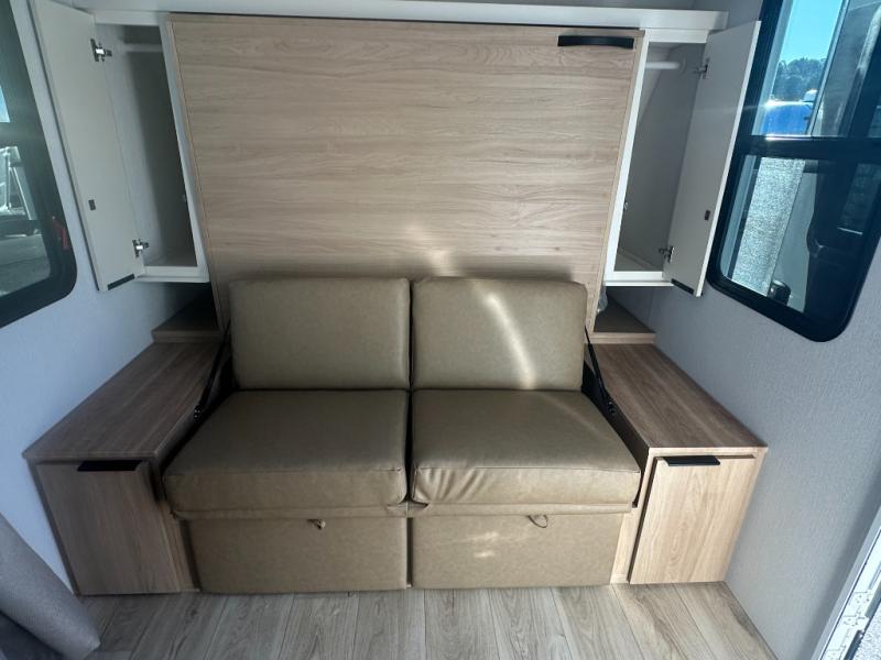 If you're looking for versatility then you need this travel trailer! Depending on the time of day you enter will determine whether you see the Murphy bed or the sofa up front. A slide out 44" x 72" booth dinette can be used for dining, playing games, and sleeping space at night. The full rear bathroom is equipped with everything you will need to freshen up each morning and features a wardrobe for your clothing and linens, and a pocket door into the bath saves space in the main room. The Smart TV is conveniently located so you can watch your favorite shows from the sofa or Murphy bed as well as the dinette, plus the pantry offers a place to store your snacks and such for easy access. The cook in your bunch will love all the amenities to make meals including the handy flip-up counter for more prep space.