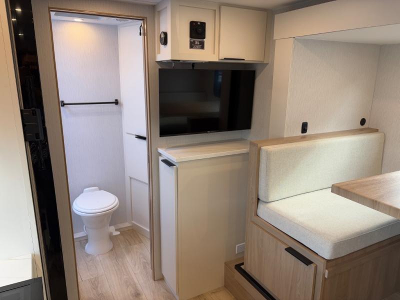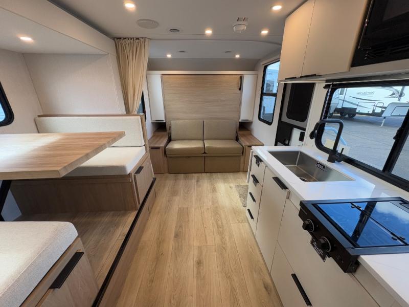 If you're looking for versatility then you need this travel trailer! Depending on the time of day you enter will determine whether you see the Murphy bed or the sofa up front. A slide out 44" x 72" booth dinette can be used for dining, playing games, and sleeping space at night. The full rear bathroom is equipped with everything you will need to freshen up each morning and features a wardrobe for your clothing and linens, and a pocket door into the bath saves space in the main room. The Smart TV is conveniently located so you can watch your favorite shows from the sofa or Murphy bed as well as the dinette, plus the pantry offers a place to store your snacks and such for easy access. The cook in your bunch will love all the amenities to make meals including the handy flip-up counter for more prep space.