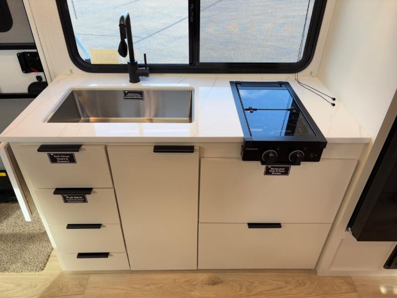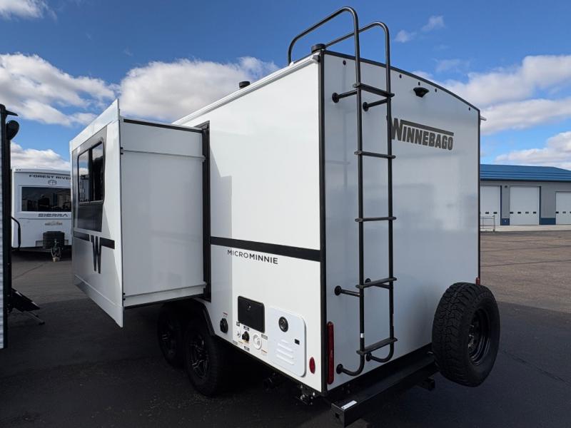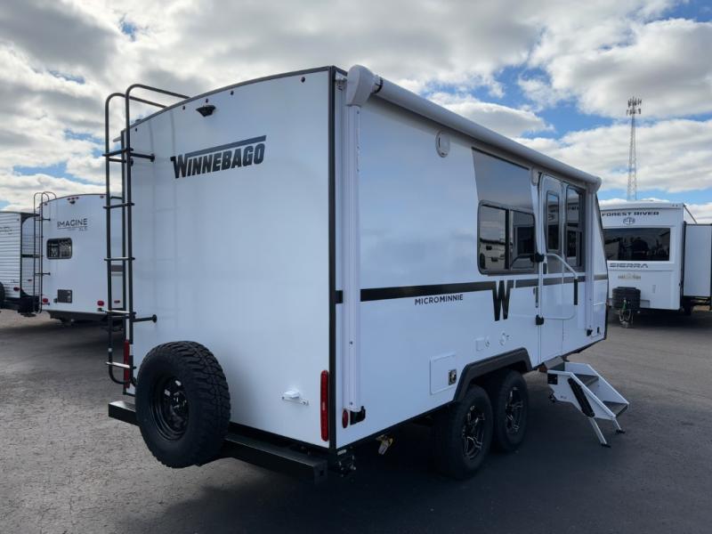 Start out on your boundless journey in one of these Winnebago Micro Minnie travel trailers! Towing is made simple with the 7' width to keep your Micro Minnie in your rear-view mirror. They don't lack in features either although they are compact in size. The spacious galley including a sink, refrigerator, a cooktop, and even a convection microwave oven allows you to cook without compromise. You will not only enjoy the entertainment found indoors with a Smart TV, a JBL premium sound system and Aura Cube high performance mechless media center, but outdoors you will also enjoy the JBL premium speakers and a power awning with LED lighting. Each model also comes with flexible exterior storage to make packing quick and easy, a 200-watt solar panel for off-grid camping, and Dexter TORFLEX torsion stub axles for smooth towing!