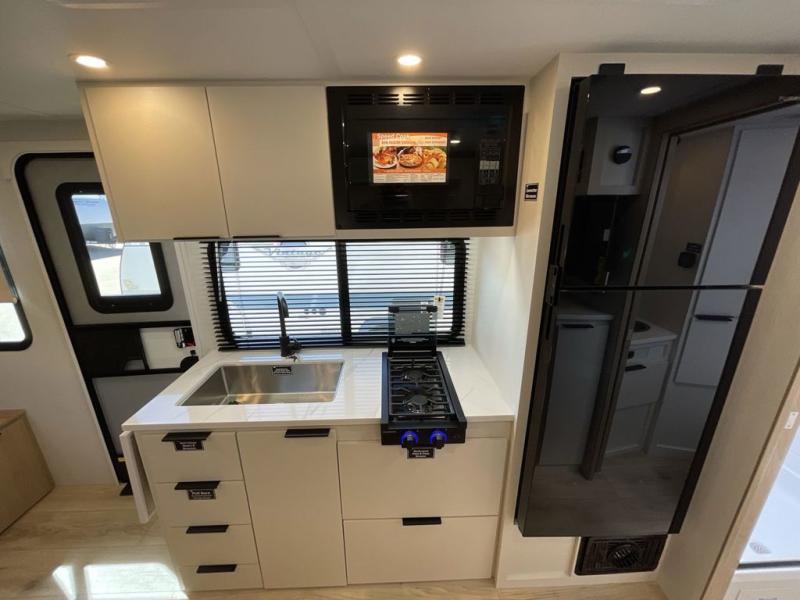 Start out on your boundless journey in one of these Winnebago Micro Minnie travel trailers! Towing is made simple with the 7' width to keep your Micro Minnie in your rear-view mirror. They don't lack in features either although they are compact in size. The spacious galley including a sink, refrigerator, a cooktop, and even a convection microwave oven allows you to cook without compromise. You will not only enjoy the entertainment found indoors with a Smart TV, a JBL premium sound system and Aura Cube high performance mechless media center, but outdoors you will also enjoy the JBL premium speakers and a power awning with LED lighting. Each model also comes with flexible exterior storage to make packing quick and easy, a 200-watt solar panel for off-grid camping, and Dexter TORFLEX torsion stub axles for smooth towing!