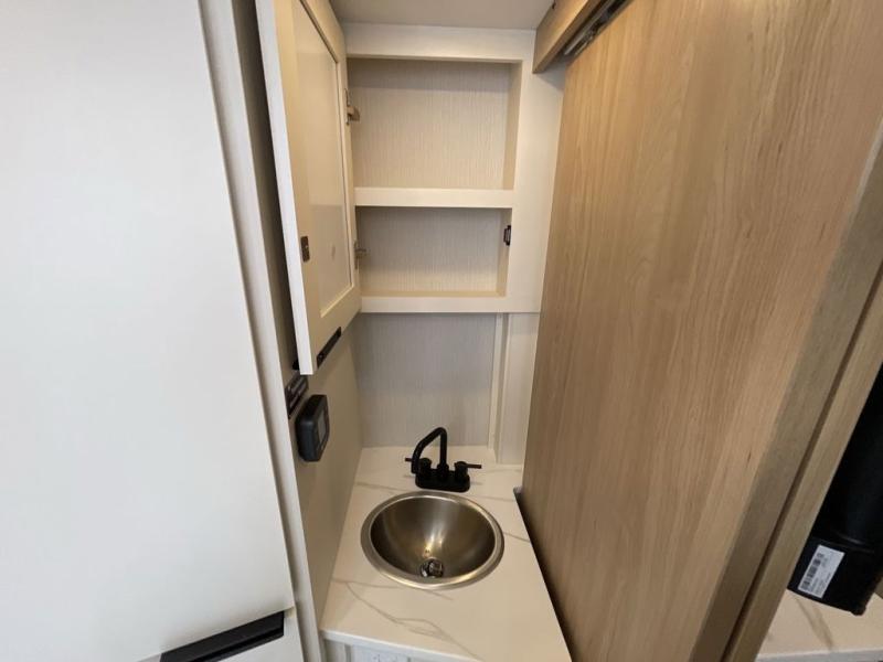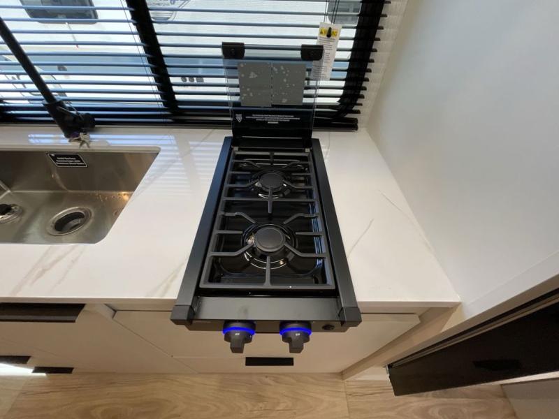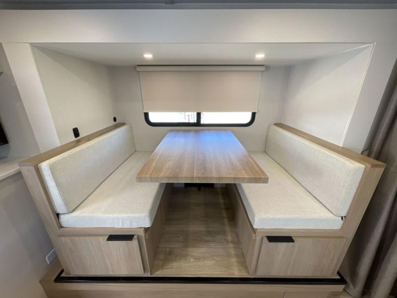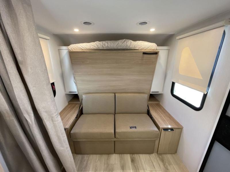 If you're looking for versatility then you need this travel trailer! Depending on the time of day you enter will determine whether you see the Murphy bed or the sofa up front. A slide out 44" x 72" booth dinette can be used for dining, playing games, and sleeping space at night. The full rear bathroom is equipped with everything you will need to freshen up each morning and features a wardrobe for your clothing and linens, and a pocket door into the bath saves space in the main room. The Smart TV is conveniently located so you can watch your favorite shows from the sofa or Murphy bed as well as the dinette, plus the pantry offers a place to store your snacks and such for easy access. The cook in your bunch will love all the amenities to make meals including the handy flip-up counter for more prep space.